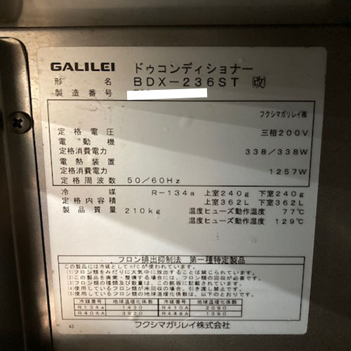 【業界最長1年保証】ドゥコンディショナー フクシマガリレイ(福島工業) BDX-236ST 業務用 中古/送料別途見積