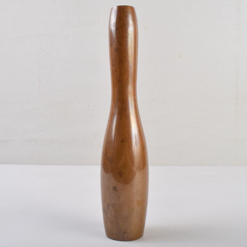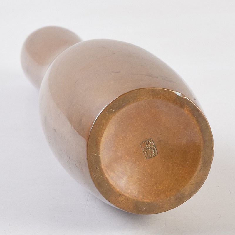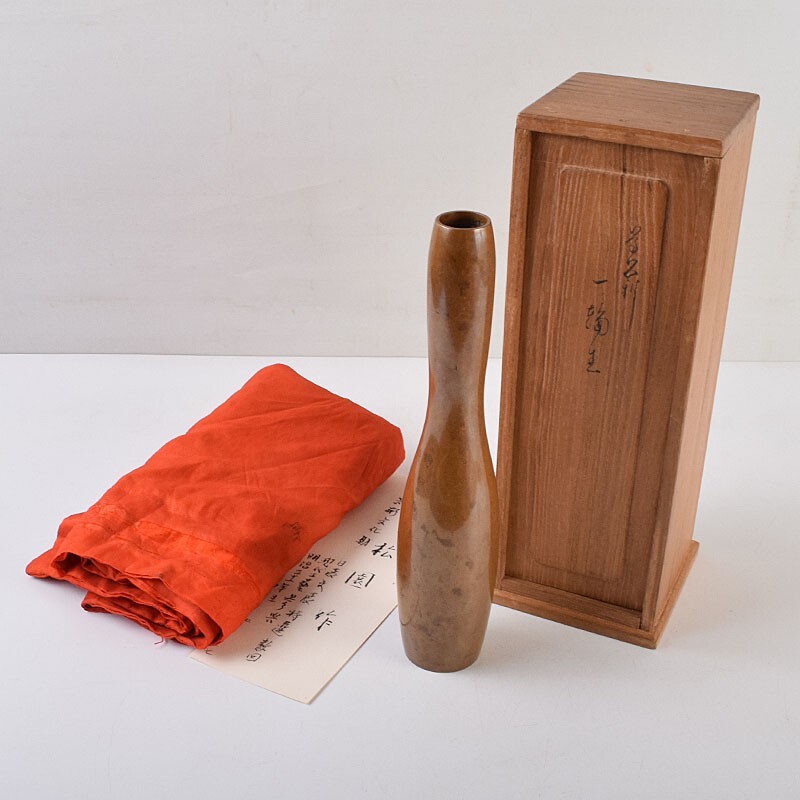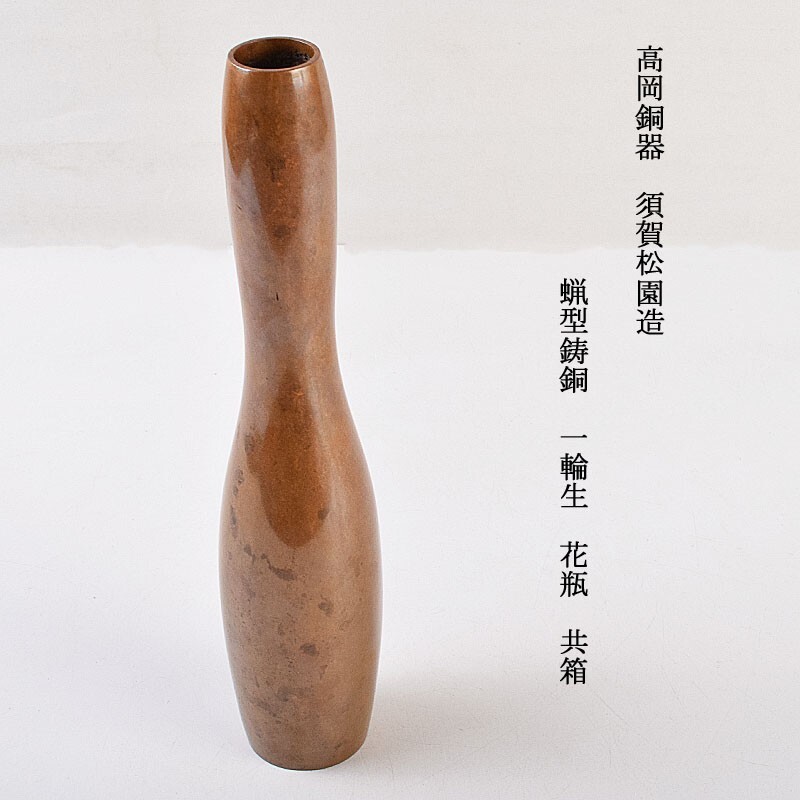 高岡銅器 須賀松園造 蝋型鋳銅 一輪生 花瓶 共箱 AYWC