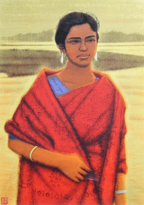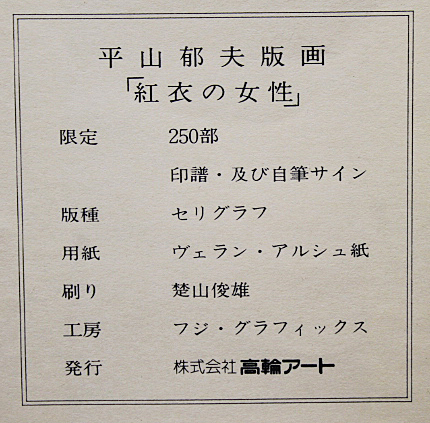 ■★平山郁夫 【紅衣の女性】 セリグラフ 直筆サイン エディション有り