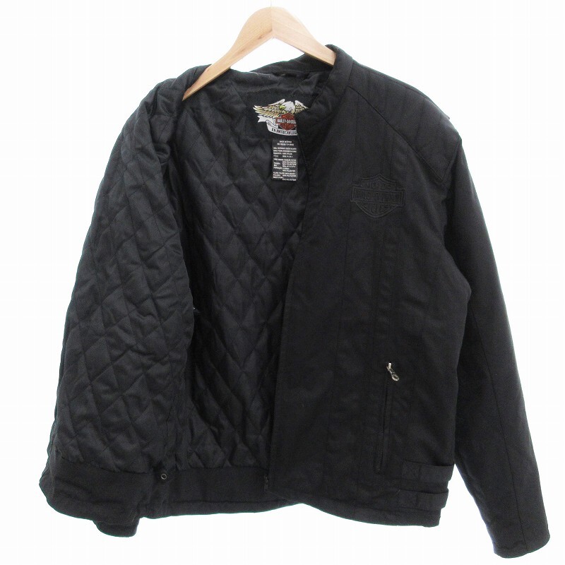 ハーレーダビッドソン HARLEY DAVIDSON 中綿ジャケット ブルゾン 刺繍 XL 黒 ブラック /OU メンズ