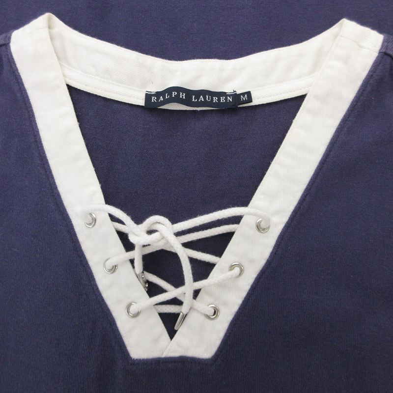 ラルフローレン RALPH LAUREN 国内正規 ワンピース ノースリーブ レースアップ ひざ丈 M 紫 パープル /UO ■GY14 レディース