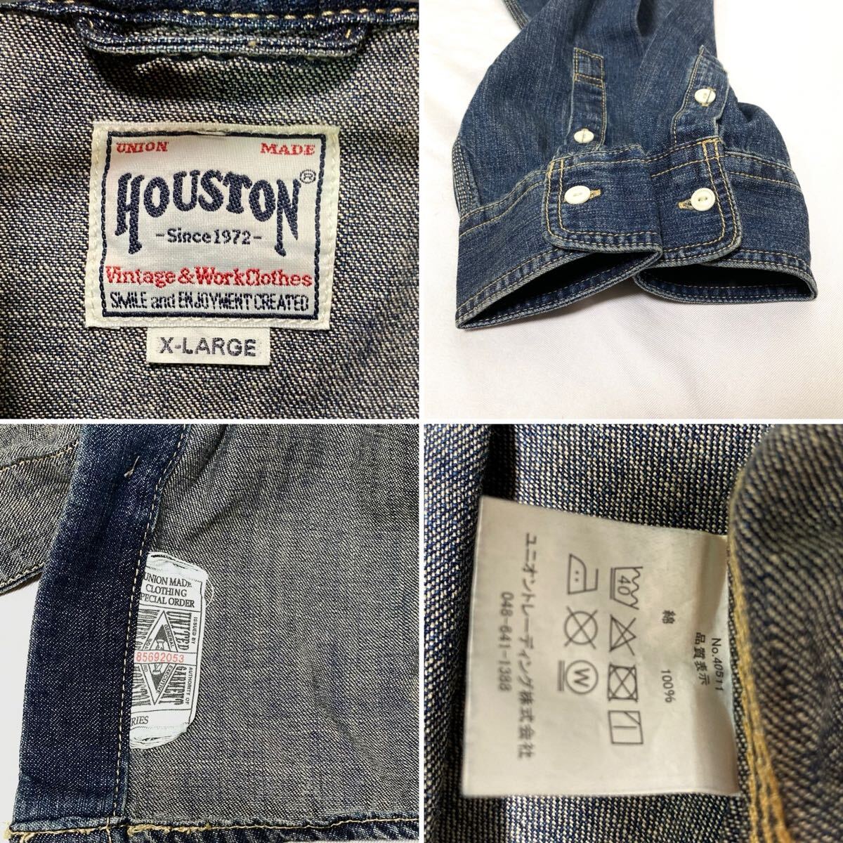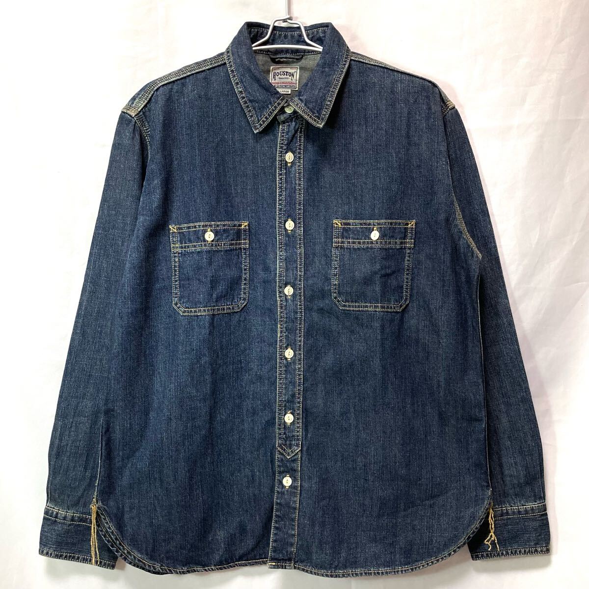 HOUSTON ヒューストン 40511 USA COTTON DENIM WORK SHIRT インディゴ コットン デニム ワークシャツ 長袖 XL アメカジです。