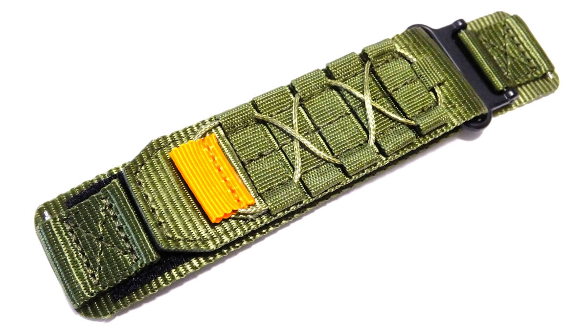 画像のお品のとおりバリバリのミリタリーデザインですのでミリタリーウォッチに相性は抜群です。