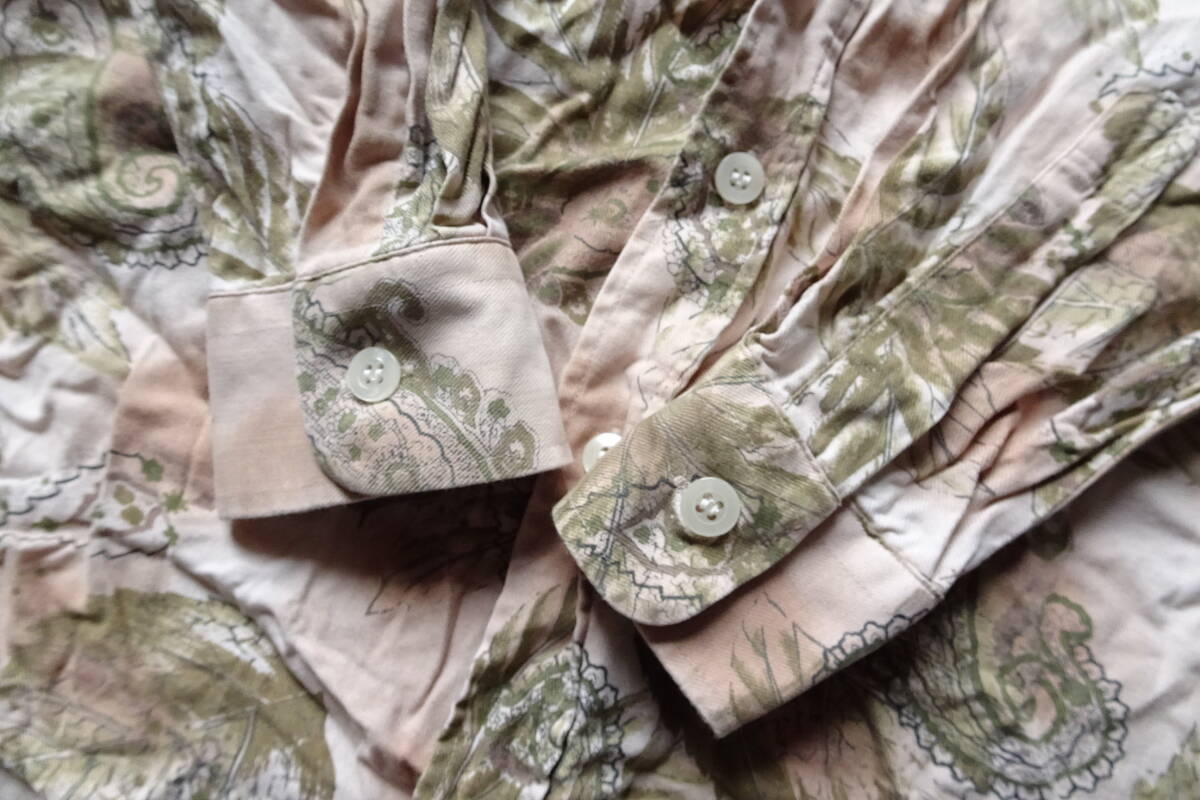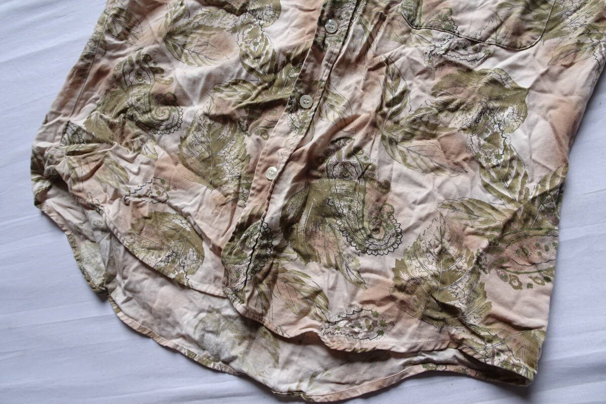 PAO CLUB SELECTION/長袖シャツ/ボタニカル柄/ペイズリー柄/左胸ポケット/裾ラウンド/ベージュ/アースカラー/Mサイズ(6/18R7)