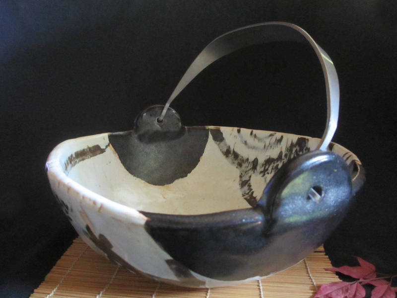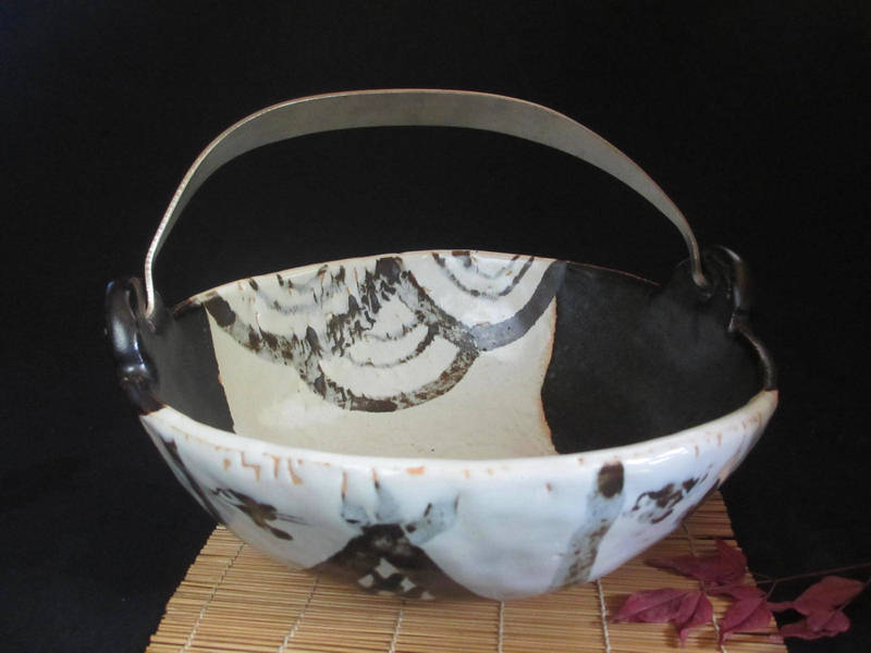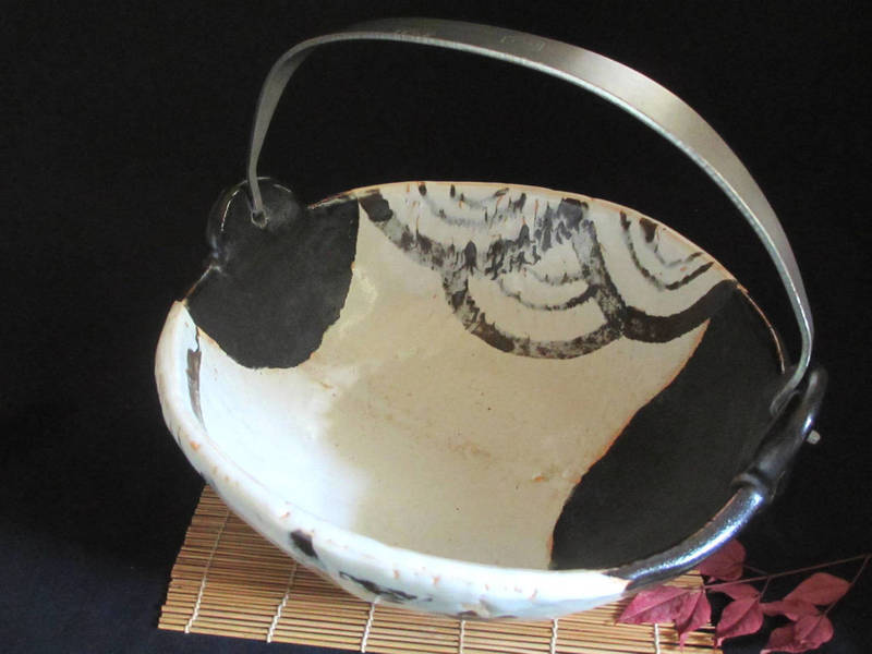 土鍋 黒織部 幾何文 豆腐鍋(4人用) 佐藤和次 早蕨窯 S-708