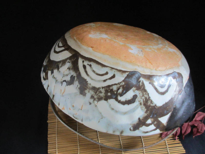 胴には大胆に海辺の景色を描き、見込みには鉄釉で「青海波」を描いたダイナミックな図柄が魅力。