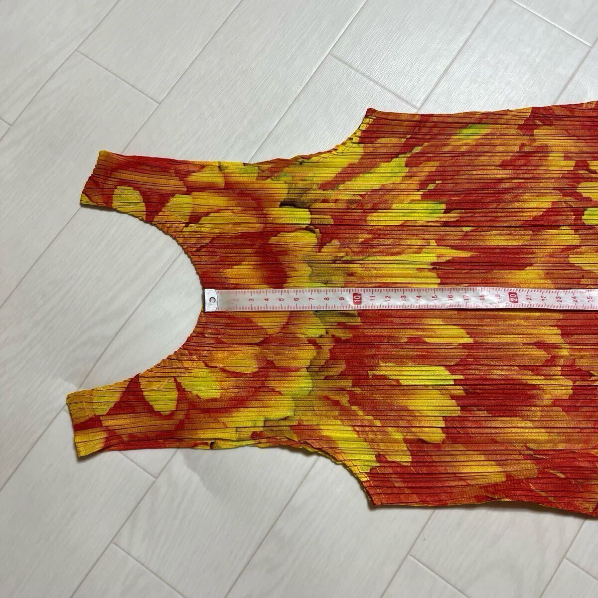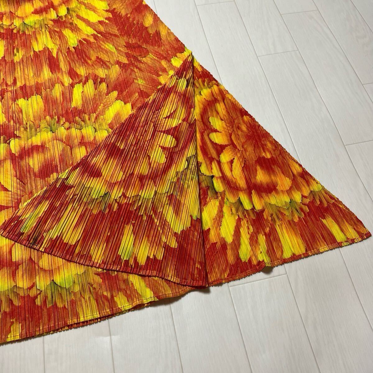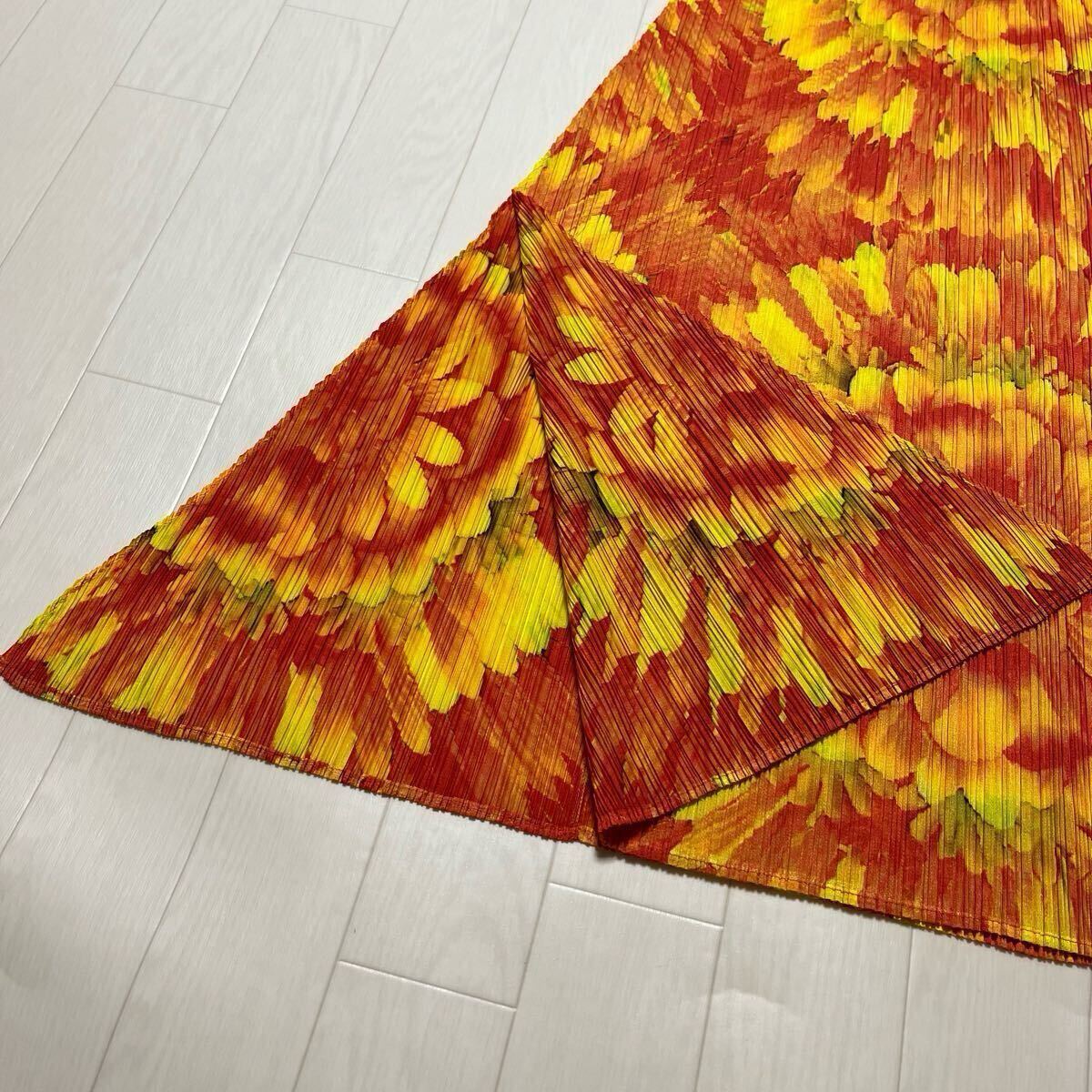 美品 プリーツプリーズ イッセイミヤケ ダリア フレア ノースリーブ ロングワンピース 花柄 ひまわり 向日葵 フラワー
