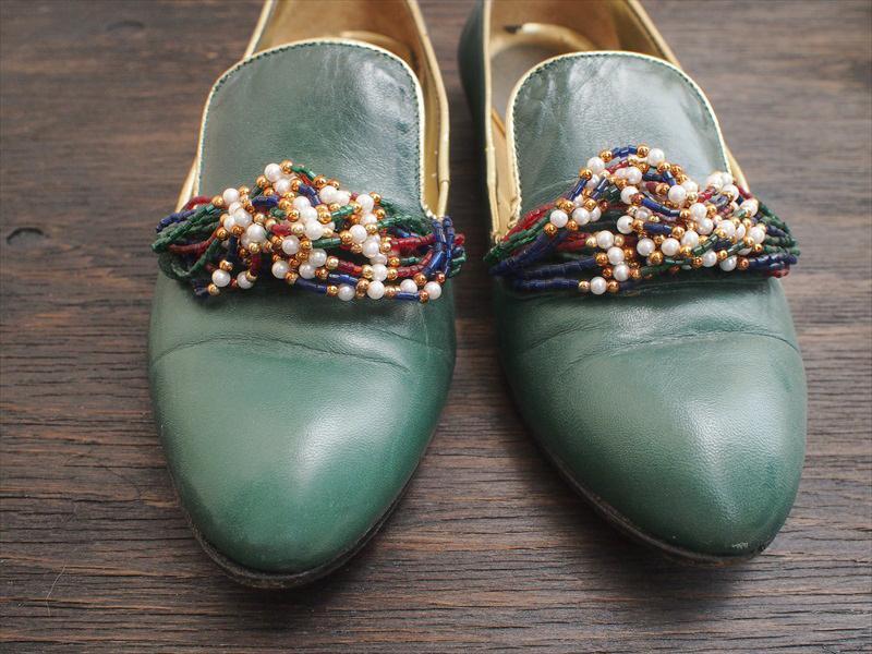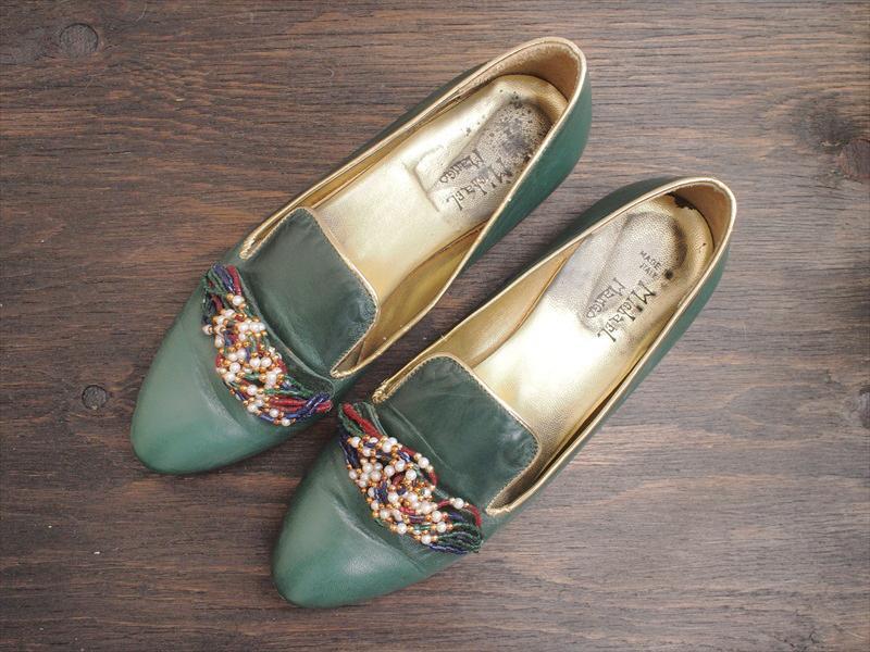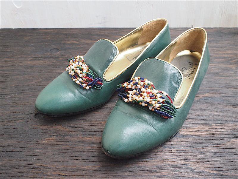ビンテージ雑貨・80年代・イタリア製ビーズ飾り付のパンプス・小さ目サイズ☆アトリエディスプレイ