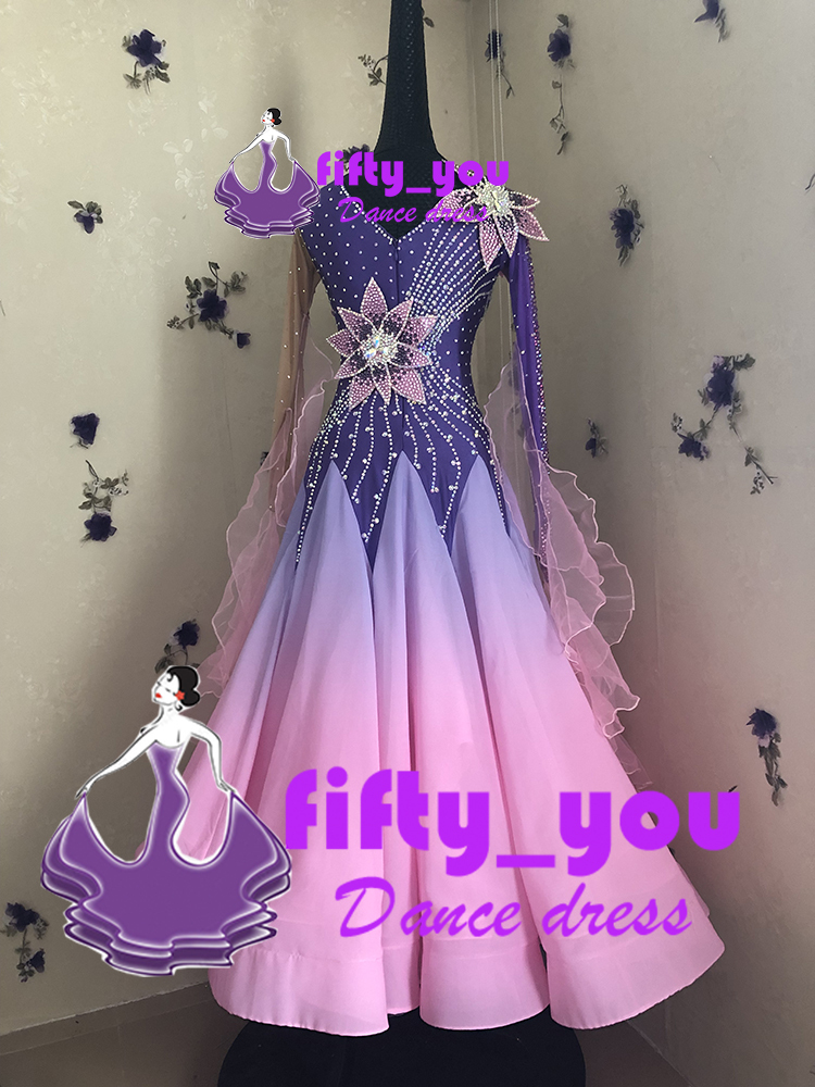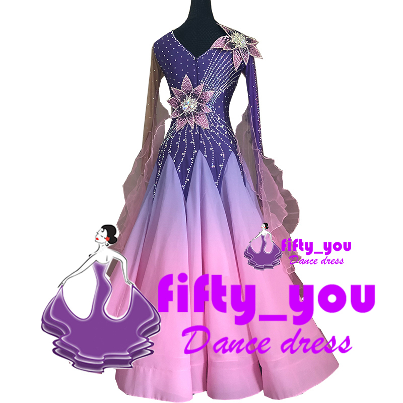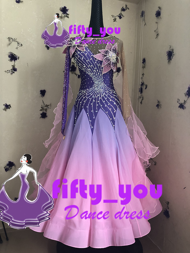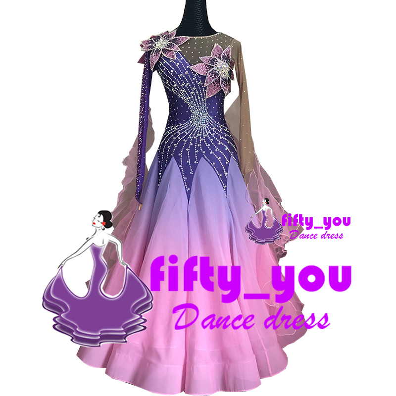 新品fifty_you ワルツ競技豪華ドレス レディース社交ダンス衣装 サイズセミオーダー ゴージャスライトストーン飾 グラデーション系