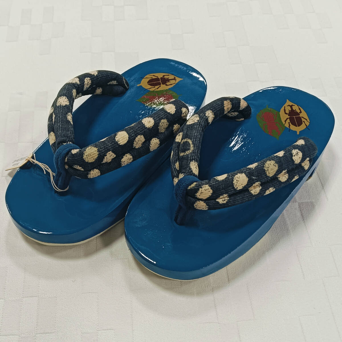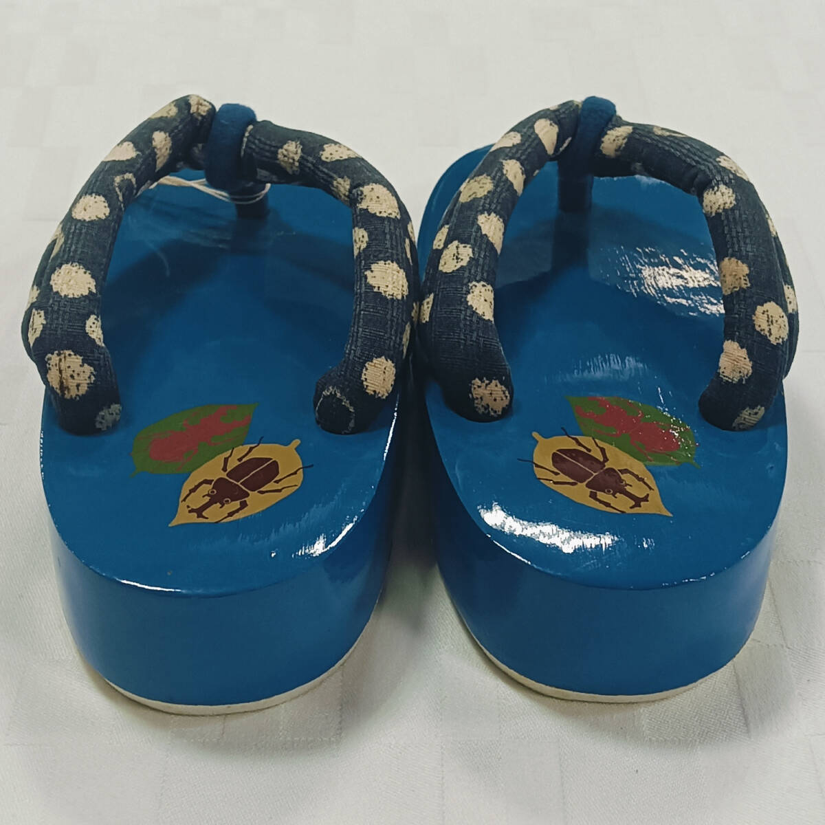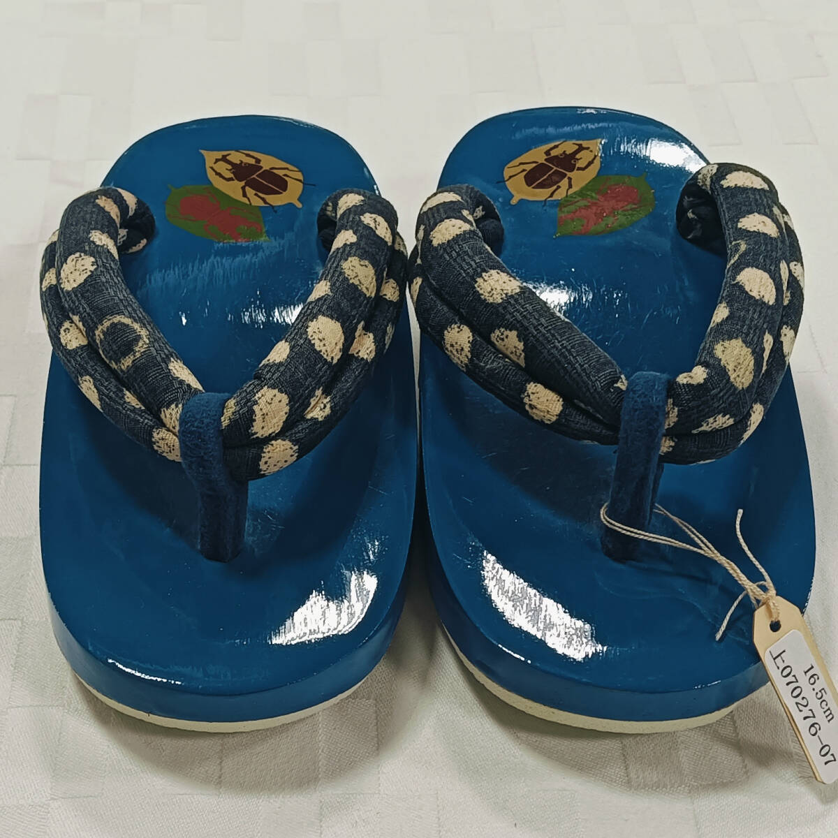 <長期在庫・未使用品>子供下駄 16.5cm カブトムシ クワガタ 水玉 ゲタ げた 子ども下駄 青色 青系