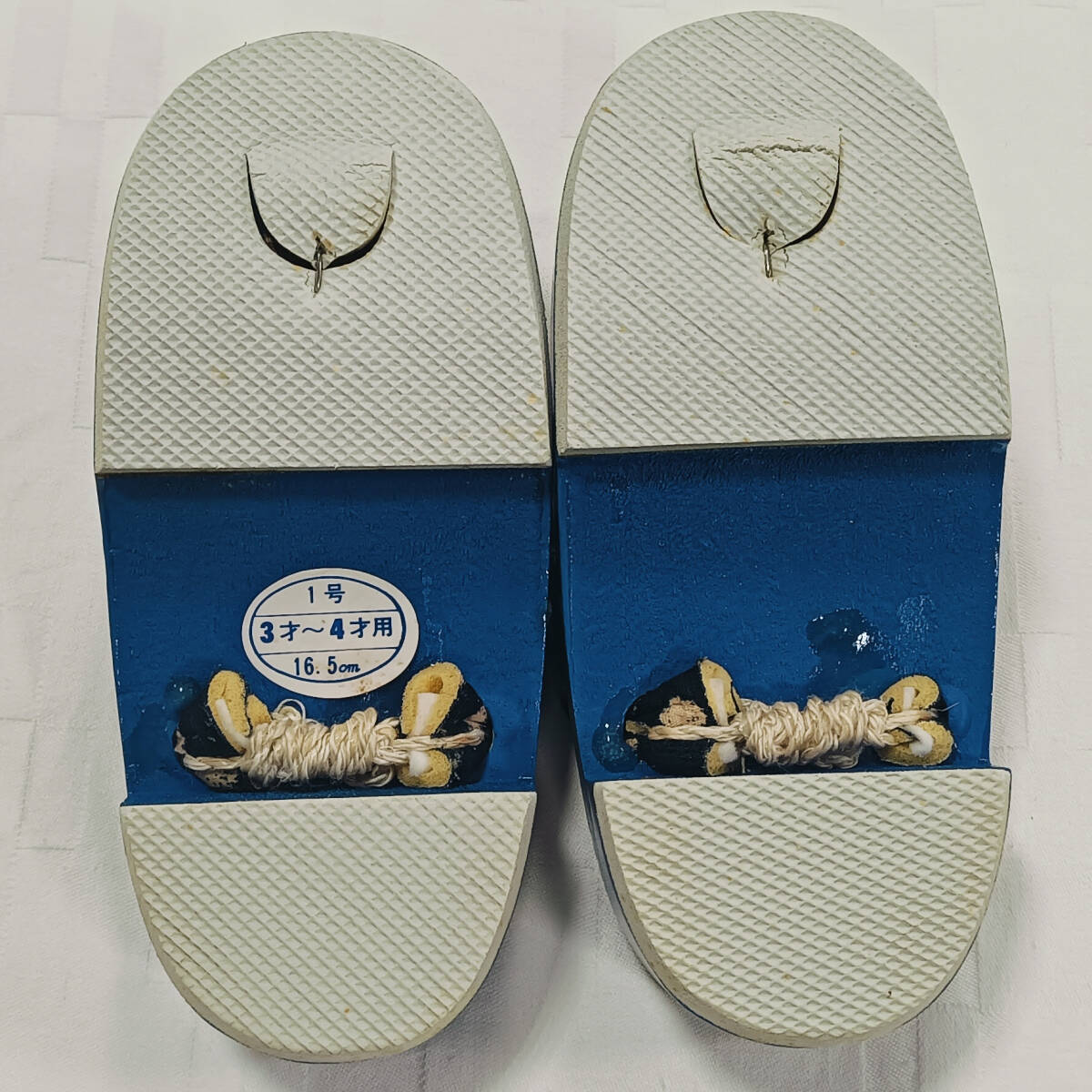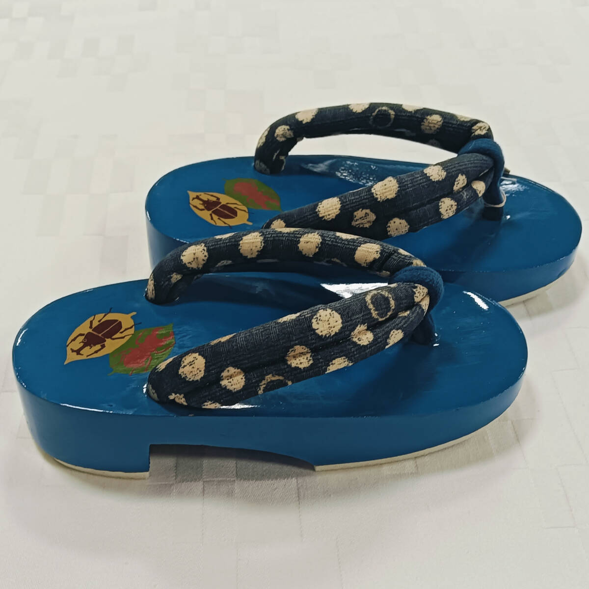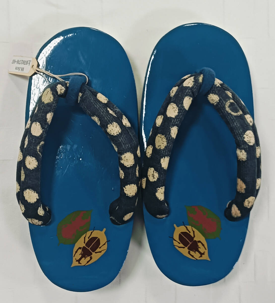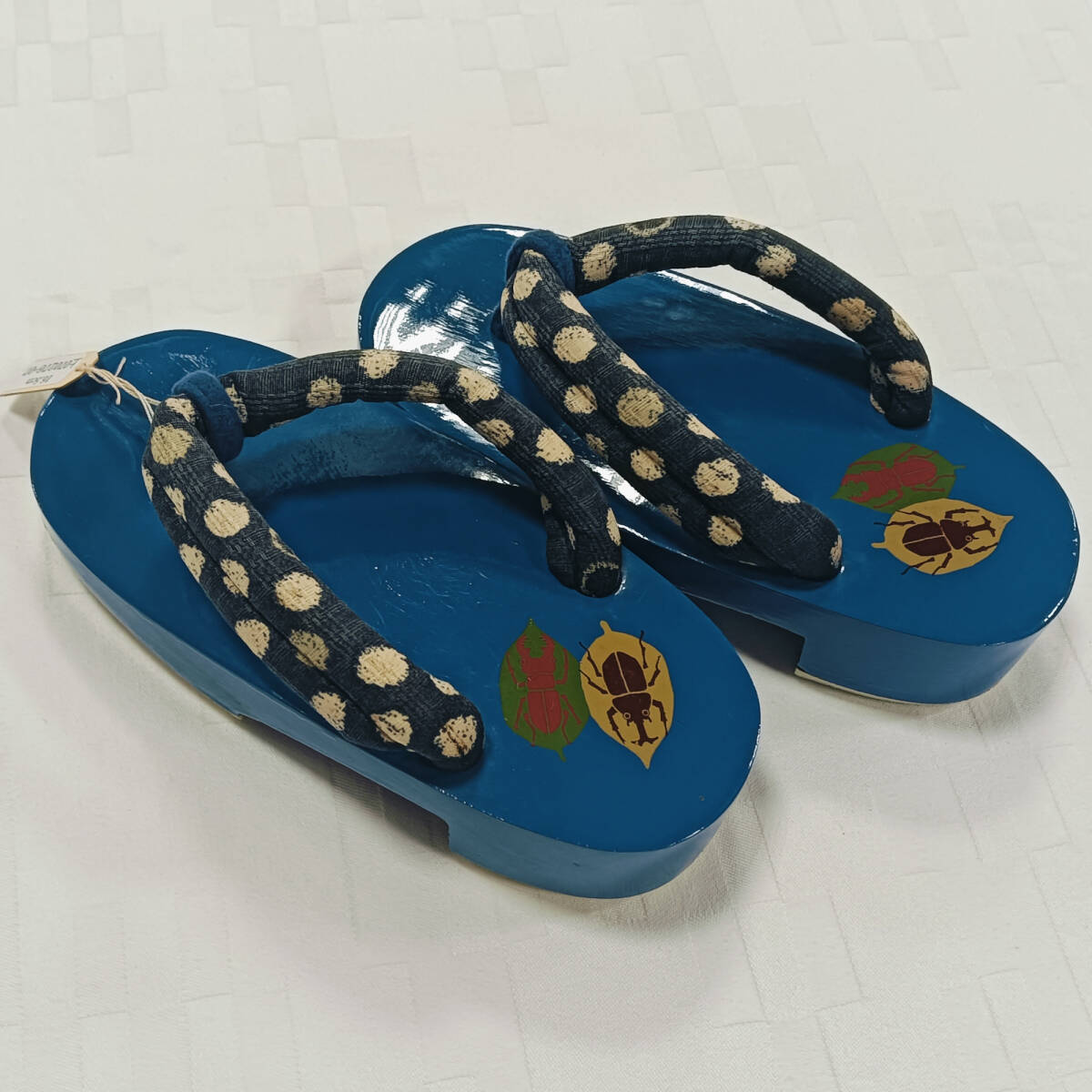 <長期在庫・未使用品>子供下駄 16.5cm カブトムシ クワガタ 水玉 ゲタ げた 子ども下駄 青色 青系