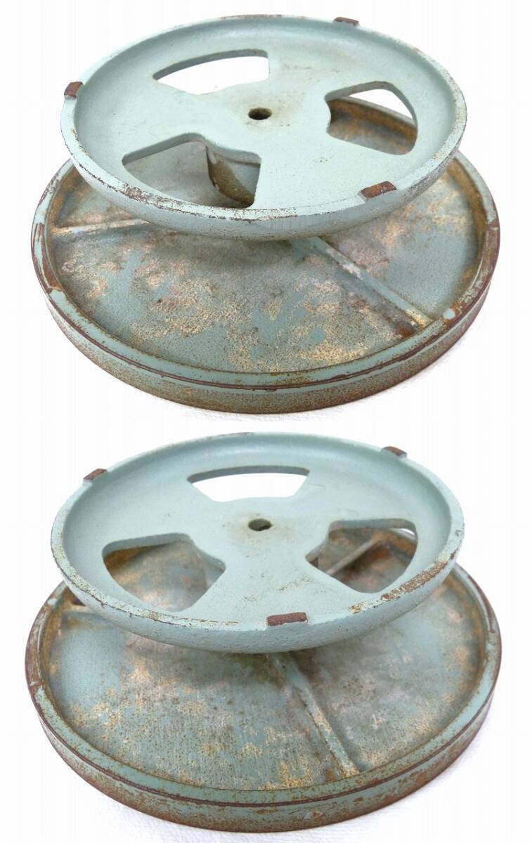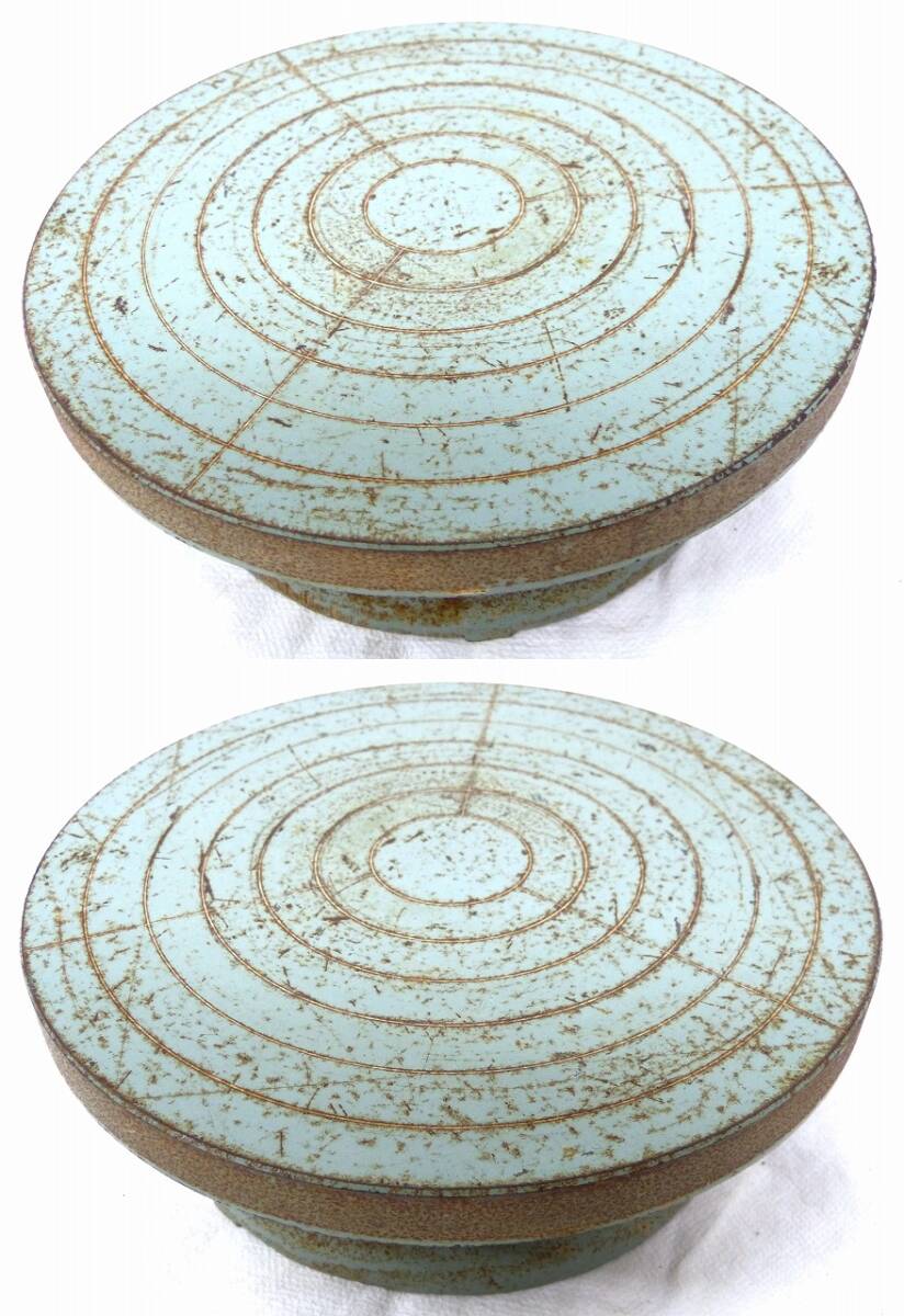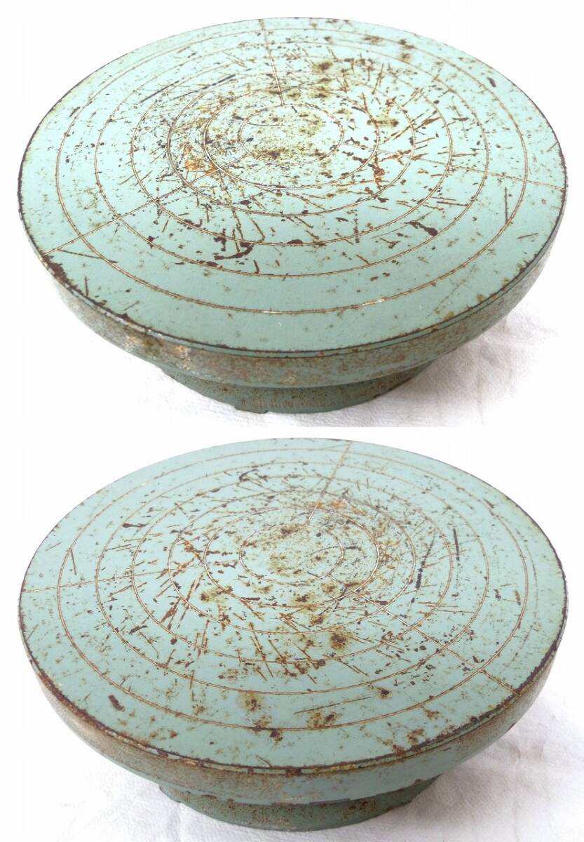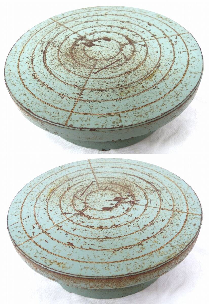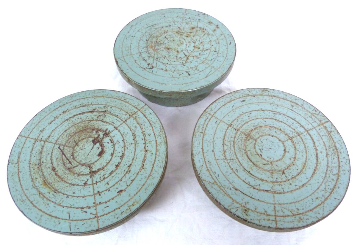 手回し ろくろ 轆轤 3点まとめて 鉄製 緑色 直径22.5cm 陶芸用品 ハンドクラフト 回転台
