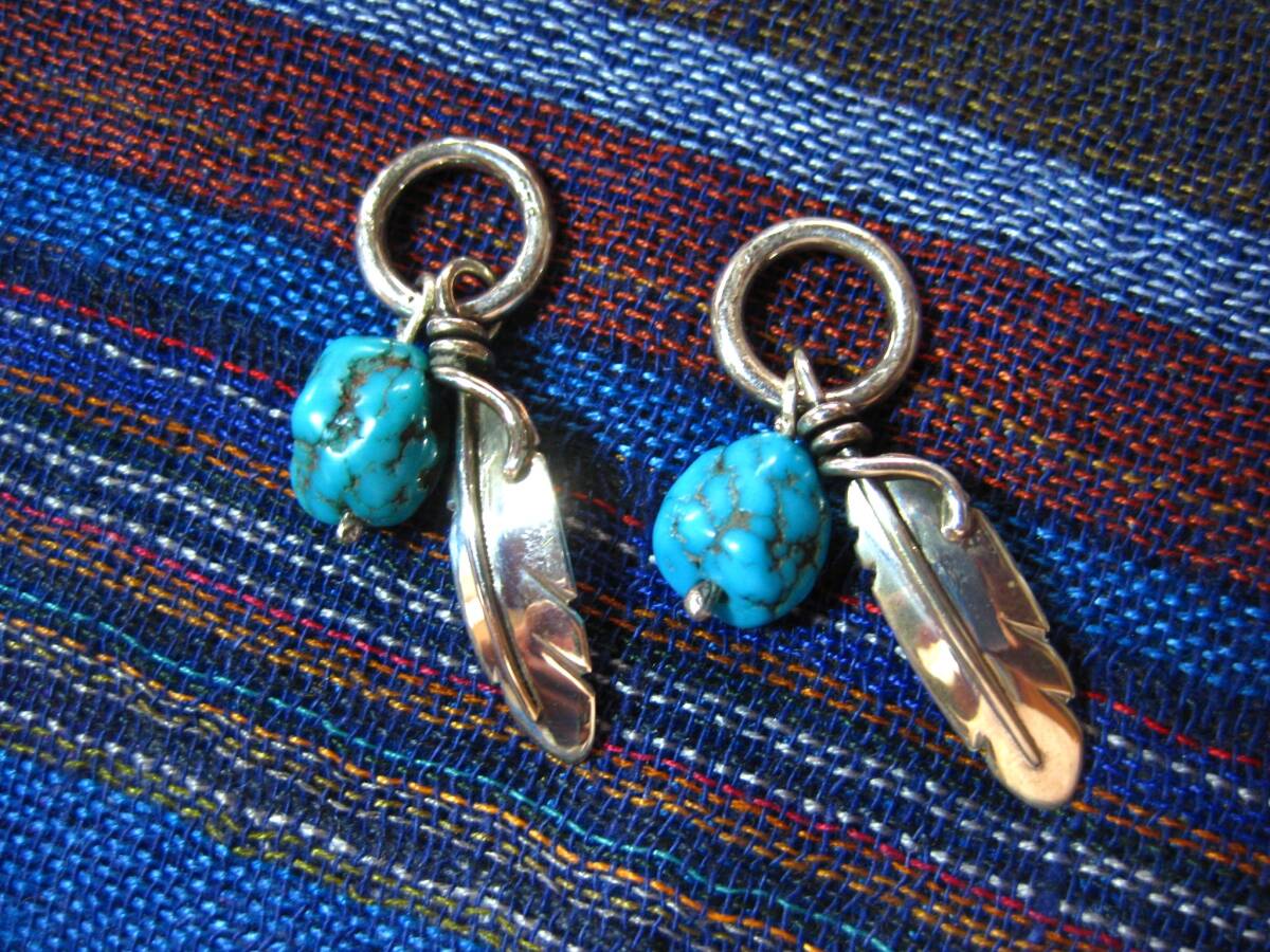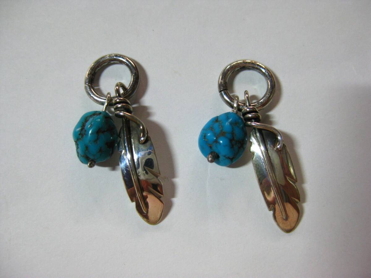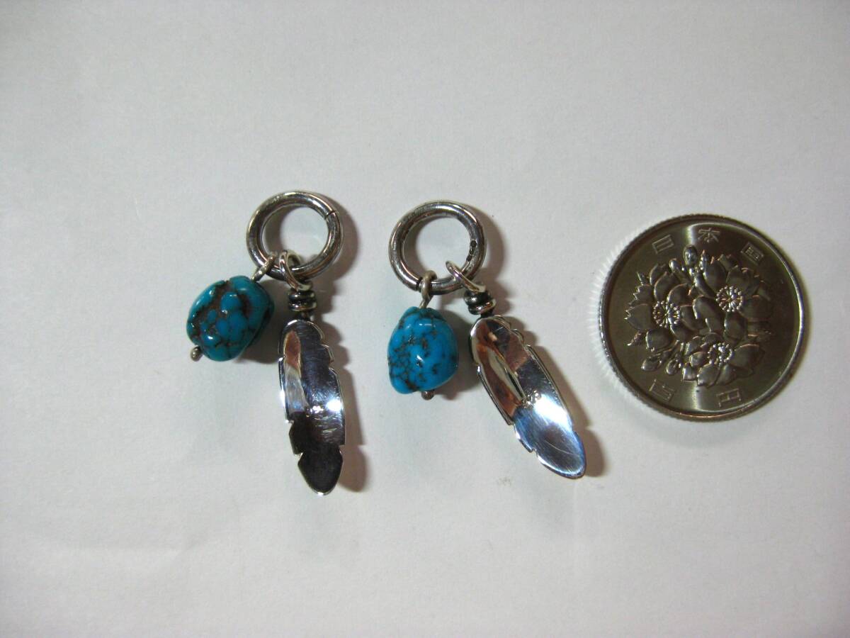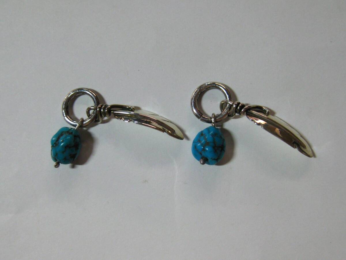P22 ターコイズ・フェザー SILVER925 ペンダント トップ ペア