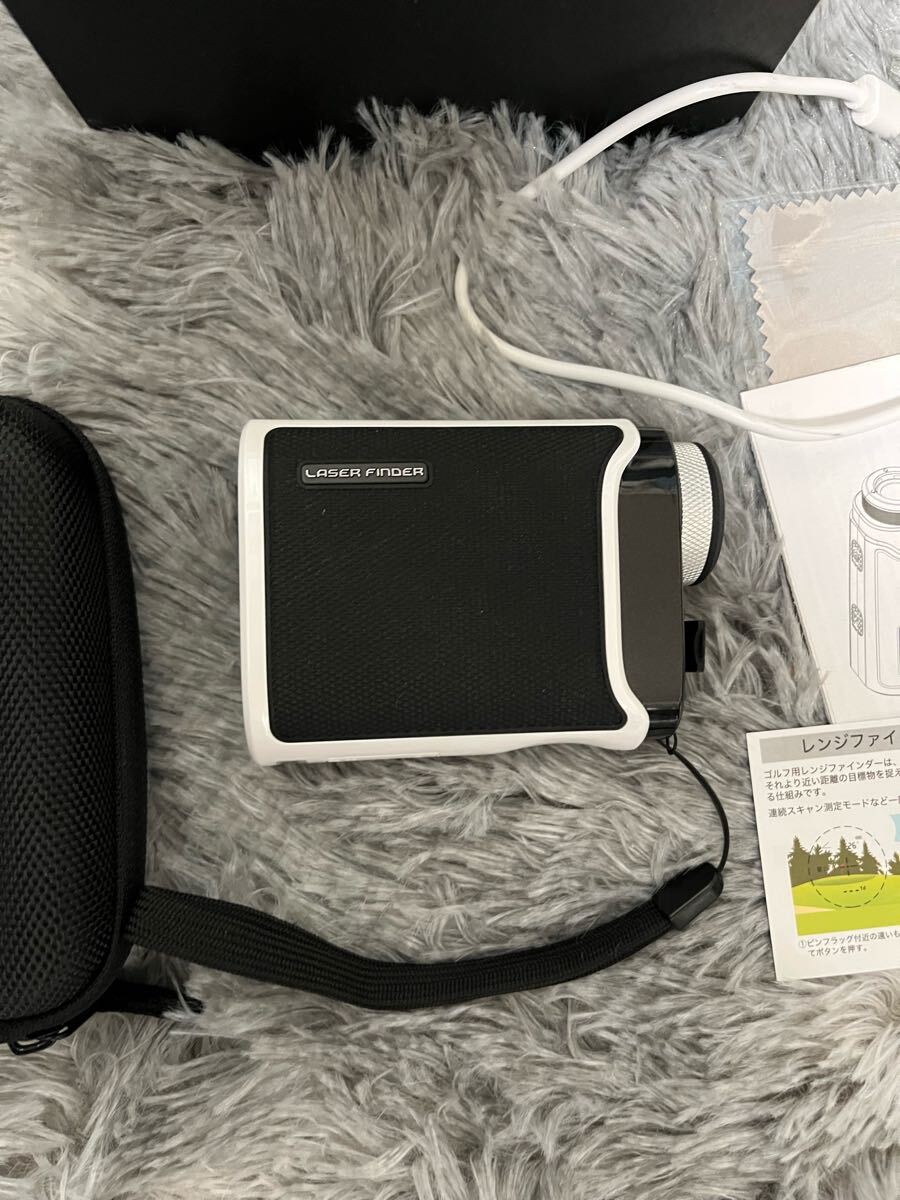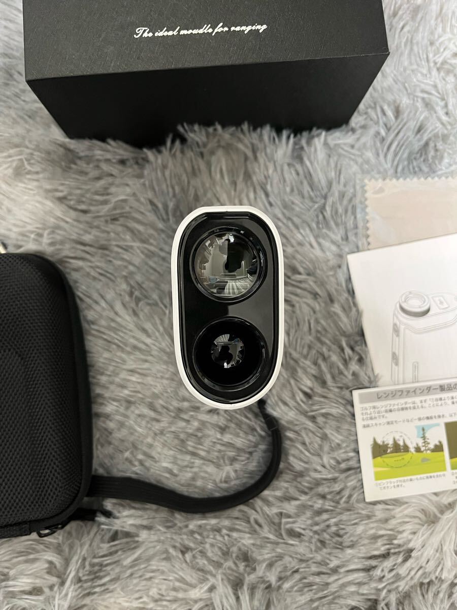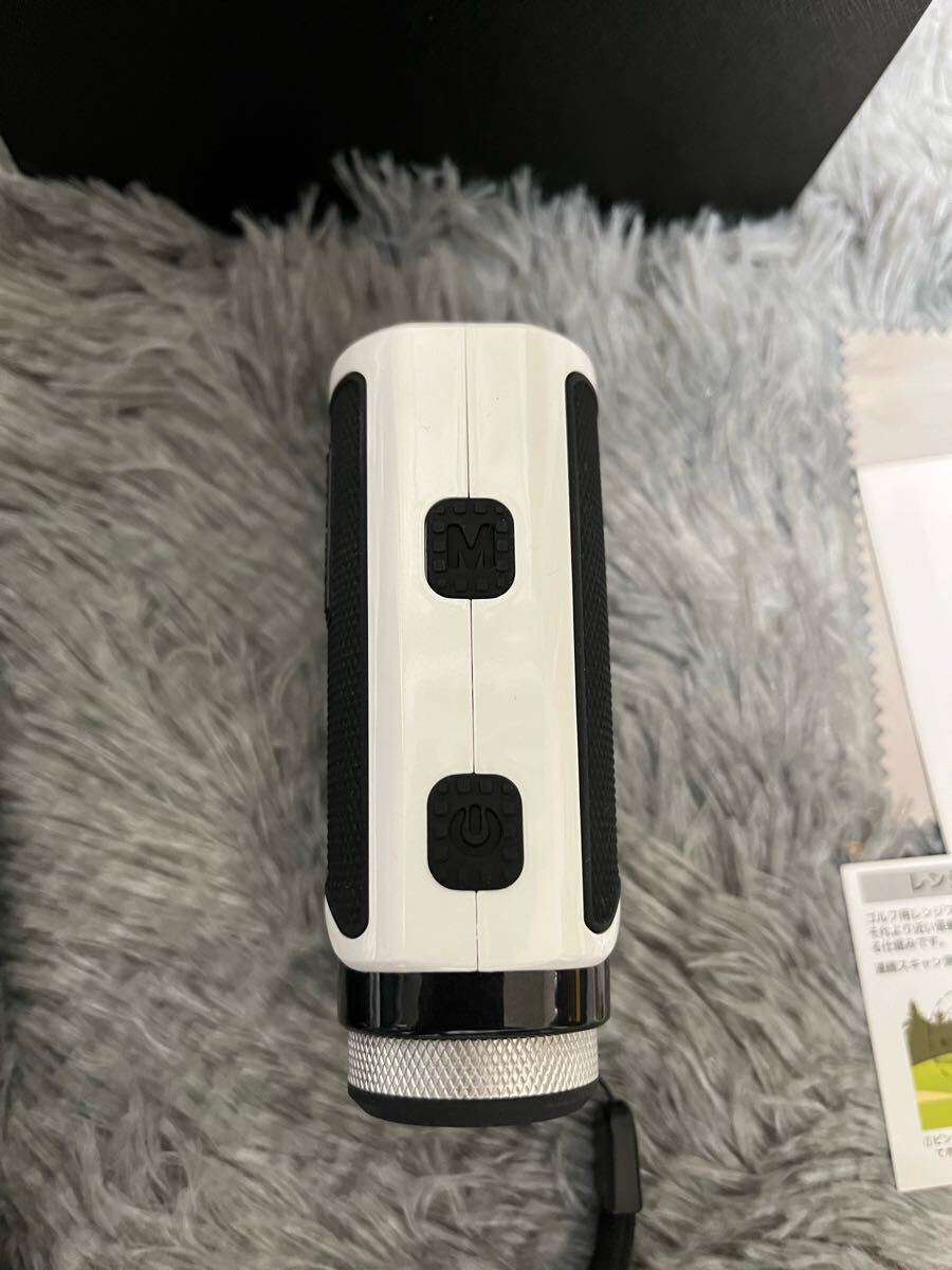距離測定機能を備えたホワイト/ブラックのゴルフ用距離計。