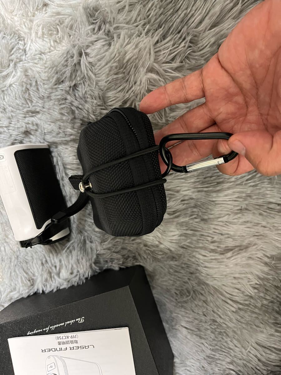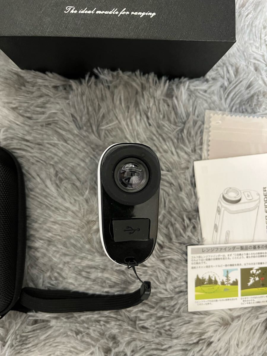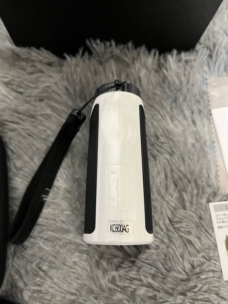 距離測定機能を備えたホワイト/ブラックのゴルフ用距離計。