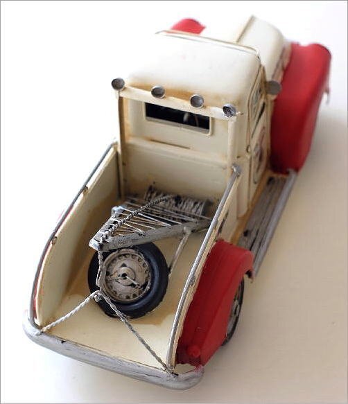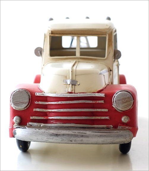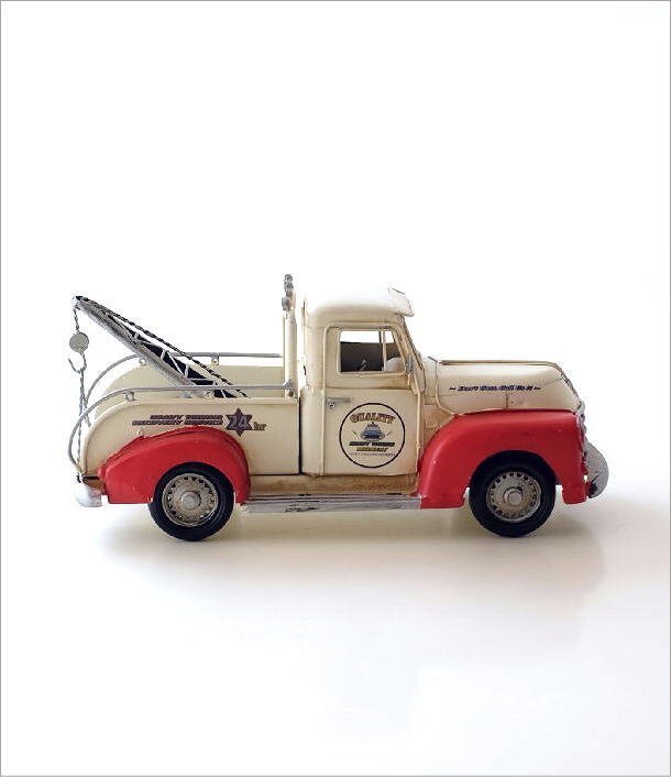| レトロな風合いが味わい深い アメリカン&アンティークなオブジェたち 手作り感たっぷりで愛着が持てます 飾る場所や飾り方を吟味するのもワクワクしそう 存在感があり、リビングでひときわ際立つ迫力のインテリアに! 50年代のシェビートラックを モチーフにした アイボリールーフのレッカー車 クレーンを搭載したヒーローカーは 後ろのデザインもかっこいいこだわりの一台です 商品名 : American Nostalgia トラック B 商品番号 : toy7519 全体サイズ(cm) : 幅34×奥行14×高さ15 材質 : アイアン 重量 : 920g 生産国 : 中国 ※タイヤの性質上、塗装が付着することがございます。家具などの上に直接置かないようお願い致します ※ハンドメイド品につき、塗装の仕上がり具合や寸法・パーツのつき方等に個体差がございます ※ディスプレイによる色の違いはご了承下さい |