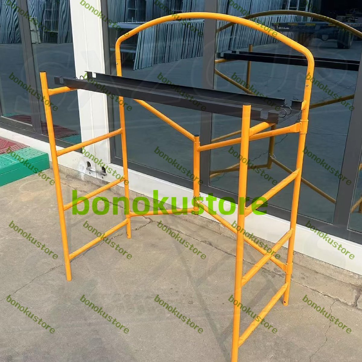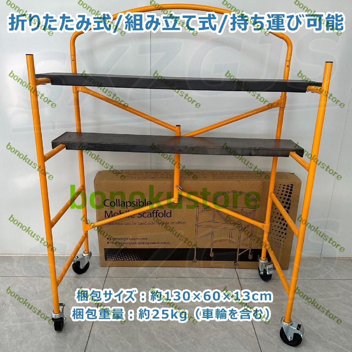 【足場仕様】材質:Q195鋼。サイズ:115×53×155cm。重量約25kg。折りたたみ後のサイズは約130×60×13cm。耐荷重は約250kgです。