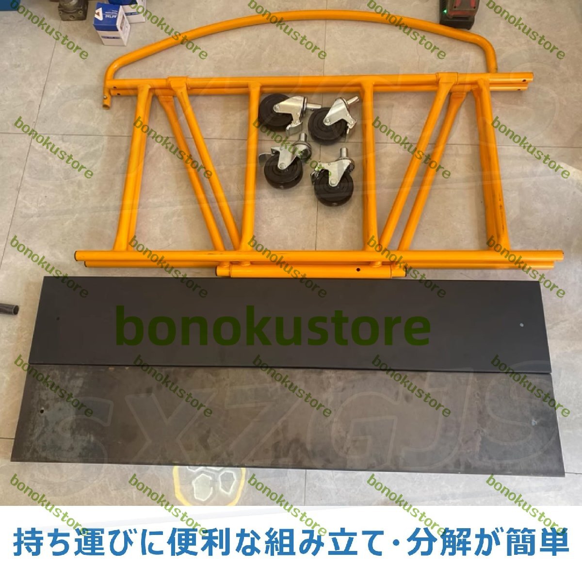 【折りたたみ式設計、収納・輸送に便利】本製品の足場は折りたたみ構造を採用しており、使用後はコンパクトに収納でき、収納スペースを大幅に節約できます。ガレージ、倉庫、工具置き場などの場所に最適です。