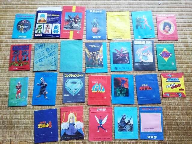 当時、駄菓子屋で売られていた商品が入っていた袋です。これだけまとまって出るのは珍しいと思います。ボトムズ消しゴムの袋にまとめて入れてお送りします。普通郵便で良ければ送料サービスします。