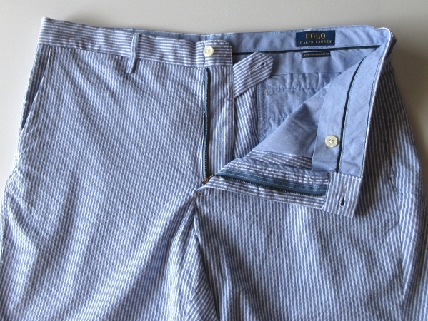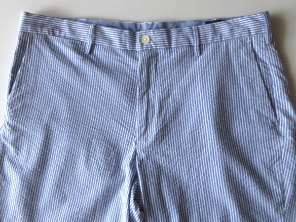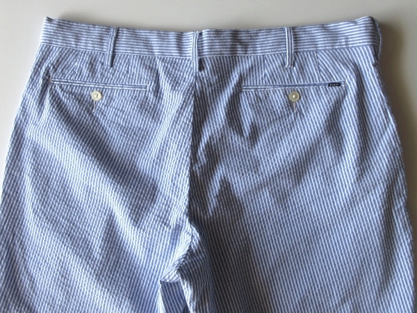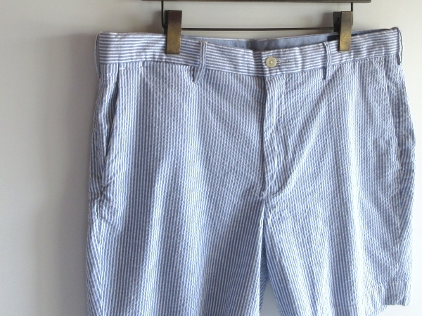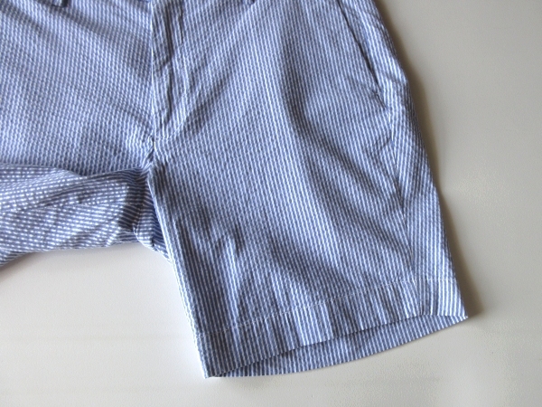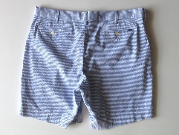 ラルフローレンのショーツ。ストレッチの効いたシアサッカー生地を使用しております。ストライプのデザイン。バックポケットのロゴピスネームがさりげないアクセントになります。上質な素材使いと綺麗なシルエットで、様々なコーディネートにお使い頂ける一着です。