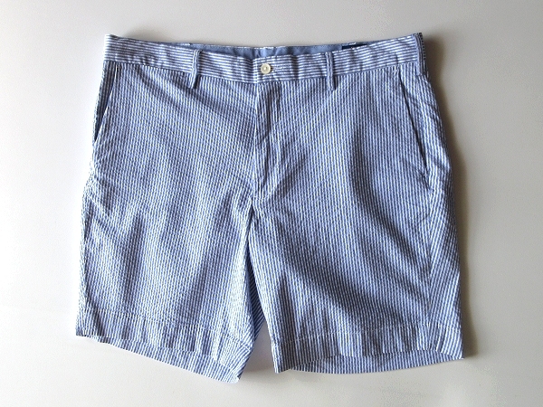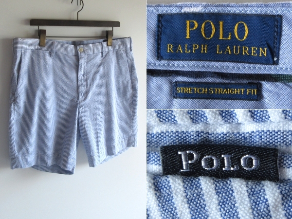 POLO RALPH LAUREN ラルフローレン ロゴピスネーム ストレッチ シアサッカー ストライプ ショートパンツ ショーツ W36 サックスブルー 白