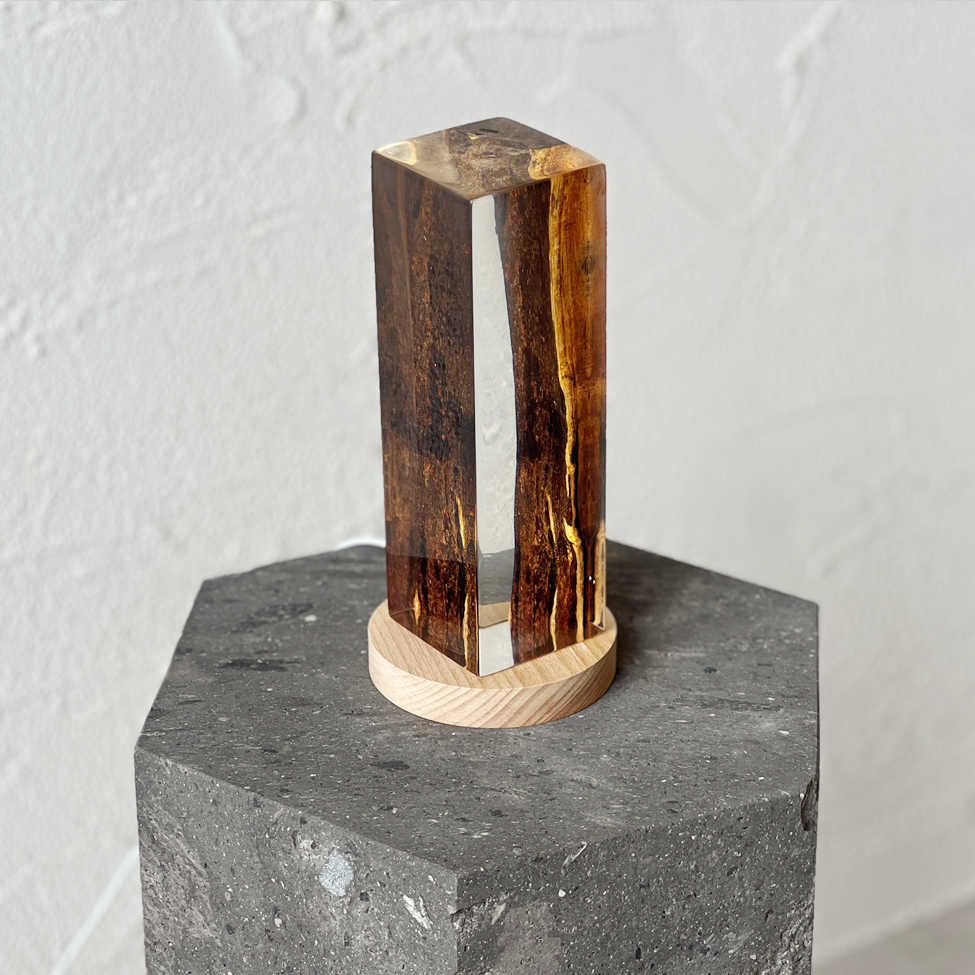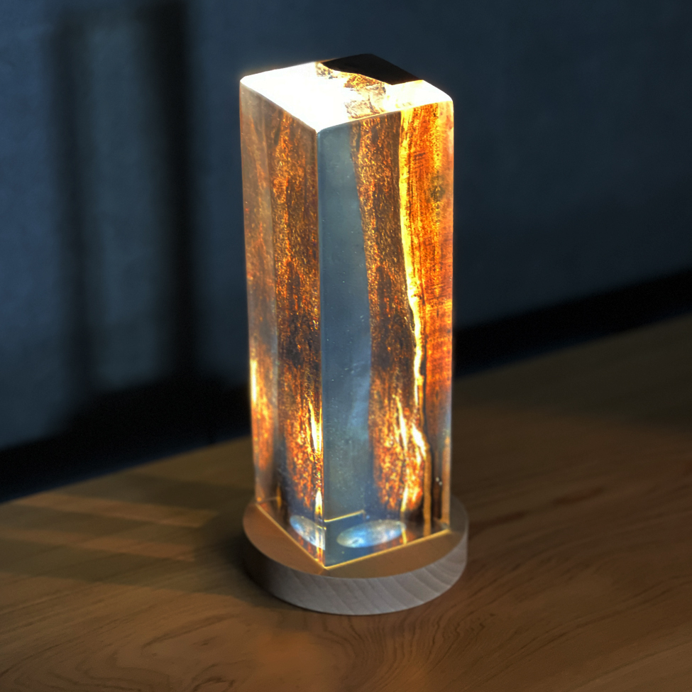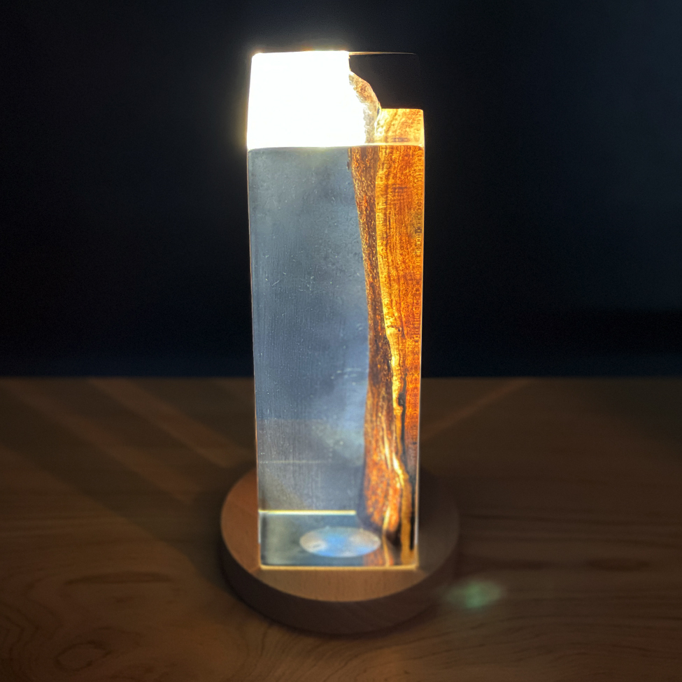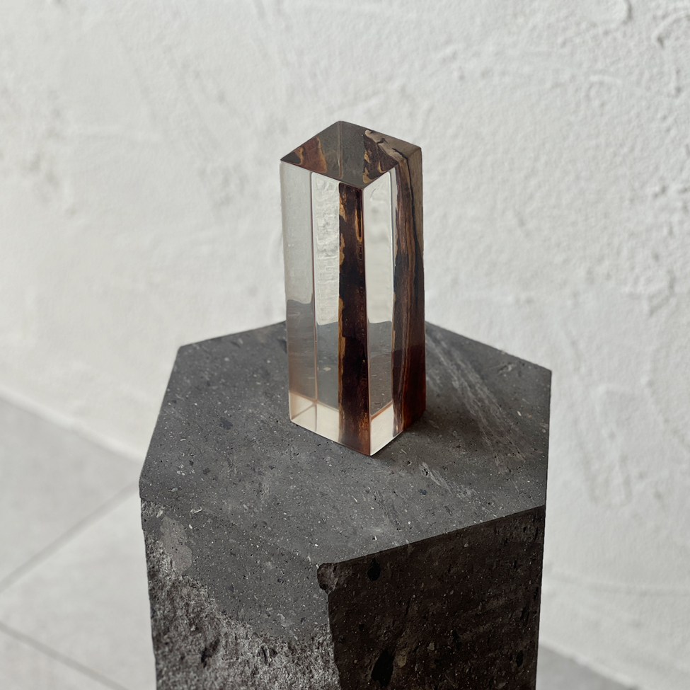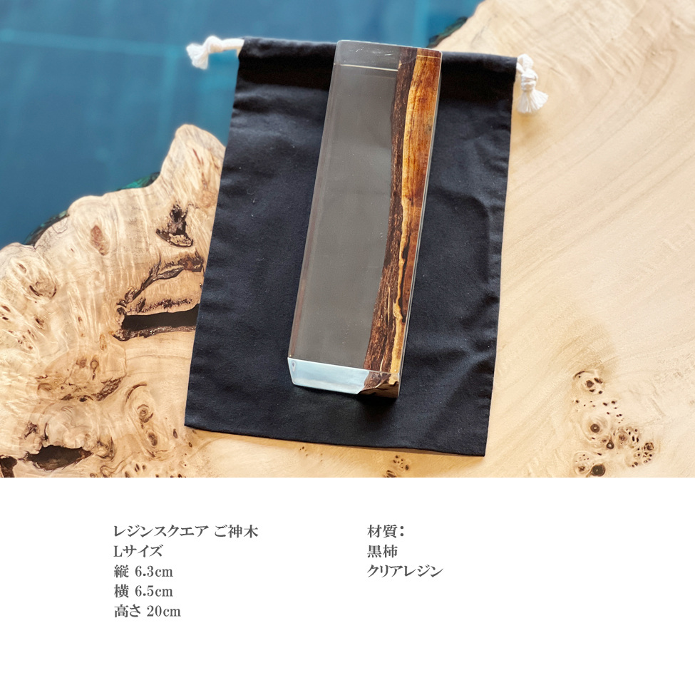 【商品説明】 レジンスクエア ご神木 Lサイズです。 ご神木として祀られていた柿の木。 その中でも、ごく限られた部分にだけ現れる黒い縞模様――黒柿。 その神秘的な文様を、透明なクリアレジンで丁寧に包み込み、 自然と静けさを宿したアートピースとして仕立てました。 この作品は、空間にただ「置く」だけでなく、 光とともに楽しむことで、さらにその魅力が深まります。 別売りのLEDスタンドに載せて下から照らすと、 レジンの中に柔らかな光が広がり、 黒柿の模様がまるで宙に浮かんでいるかのように浮かび上がります。 それはまさに、ご神木の記憶が灯りの中に現れるような、静かな奇跡。 日中と夜間、見る環境によってまったく違う表情を見せるこのアートピースは、 暮らしの中にそっと祈りと美をもたらす存在です。 【仕様・サイズ】 レジンスクエア ご神木 Lサイズ 縦 6.3cm × 横 6.5cm × 高さ 20cm 【ご注意】 天然の無垢材なので木目や色合いは一点ずつ異なります。 水につけたまま放置しないでください。 使用後はすぐに水気を取り、通気性のよい場所で陰干ししてください。 食洗器は使用しないでください。 火気や高温になるものの側に商品を近づけないでください。 素材の特性上、温度や湿度の影響により多少ガタツキが生じる場合がございます。 保管する場合はカビの発生を防ぐため通気性の良い場所で保管してください。 包丁傷やケバ立ちなど表面を整えたい場合は、サンドペーパーで研磨して オリーブオイル等自然油を薄く塗って拭き取り、乾燥させてください。 その他 カッティングボードのラインナップはこちらからご覧ください。 |