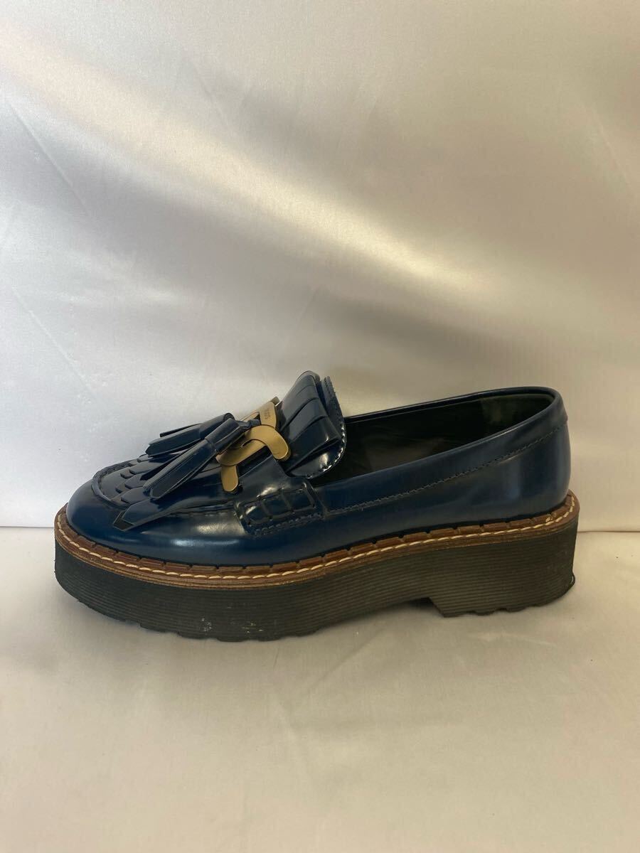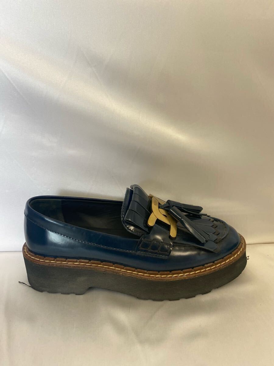 【TOD’S】トッズ タッセルローファー 36.5 ネイビー ケイト メタルチェーン 42