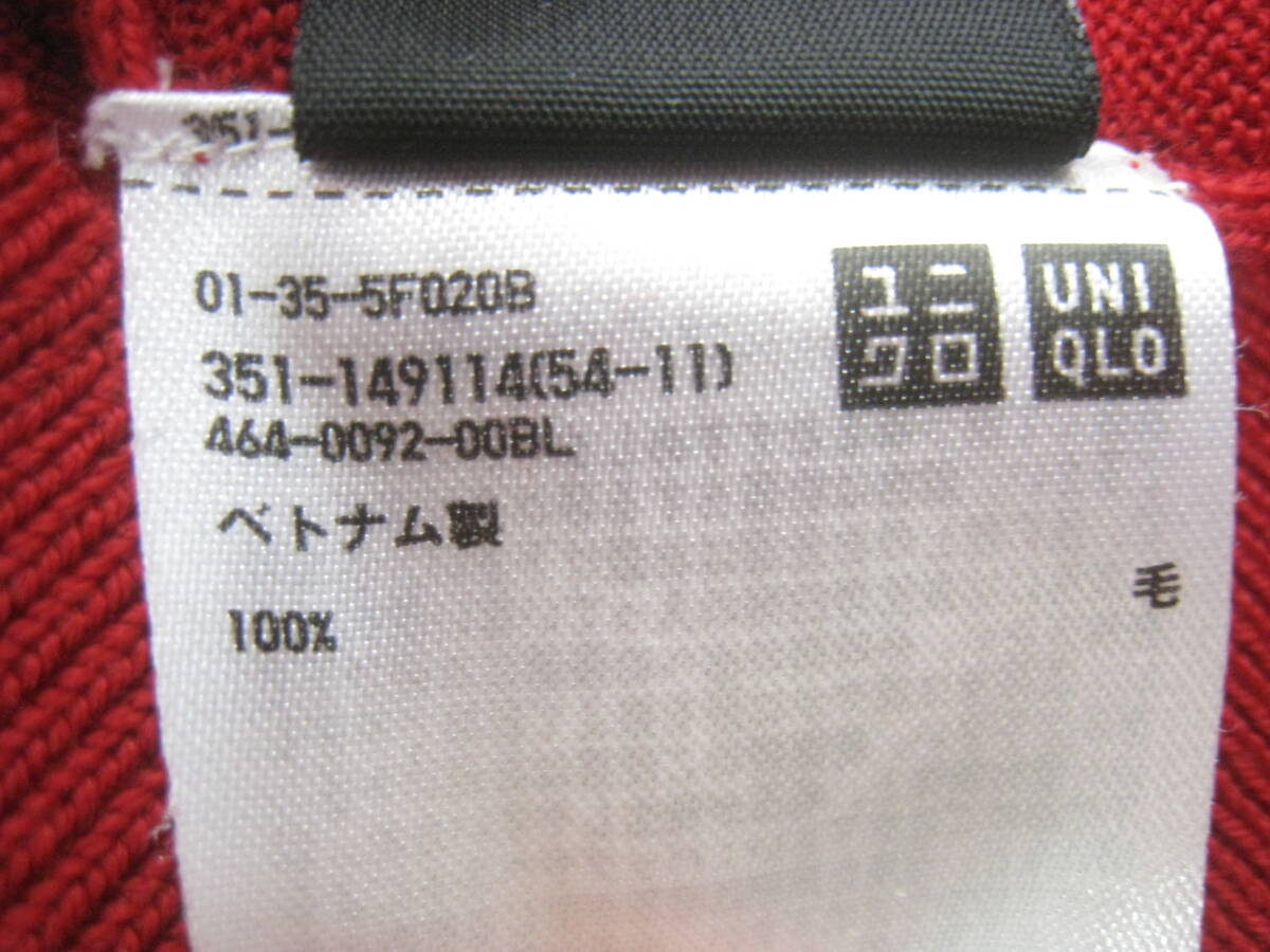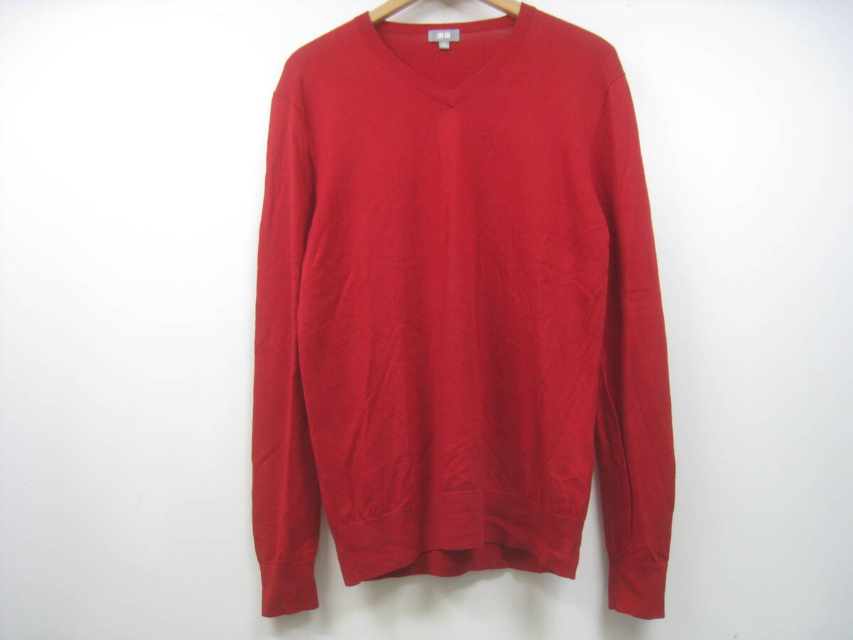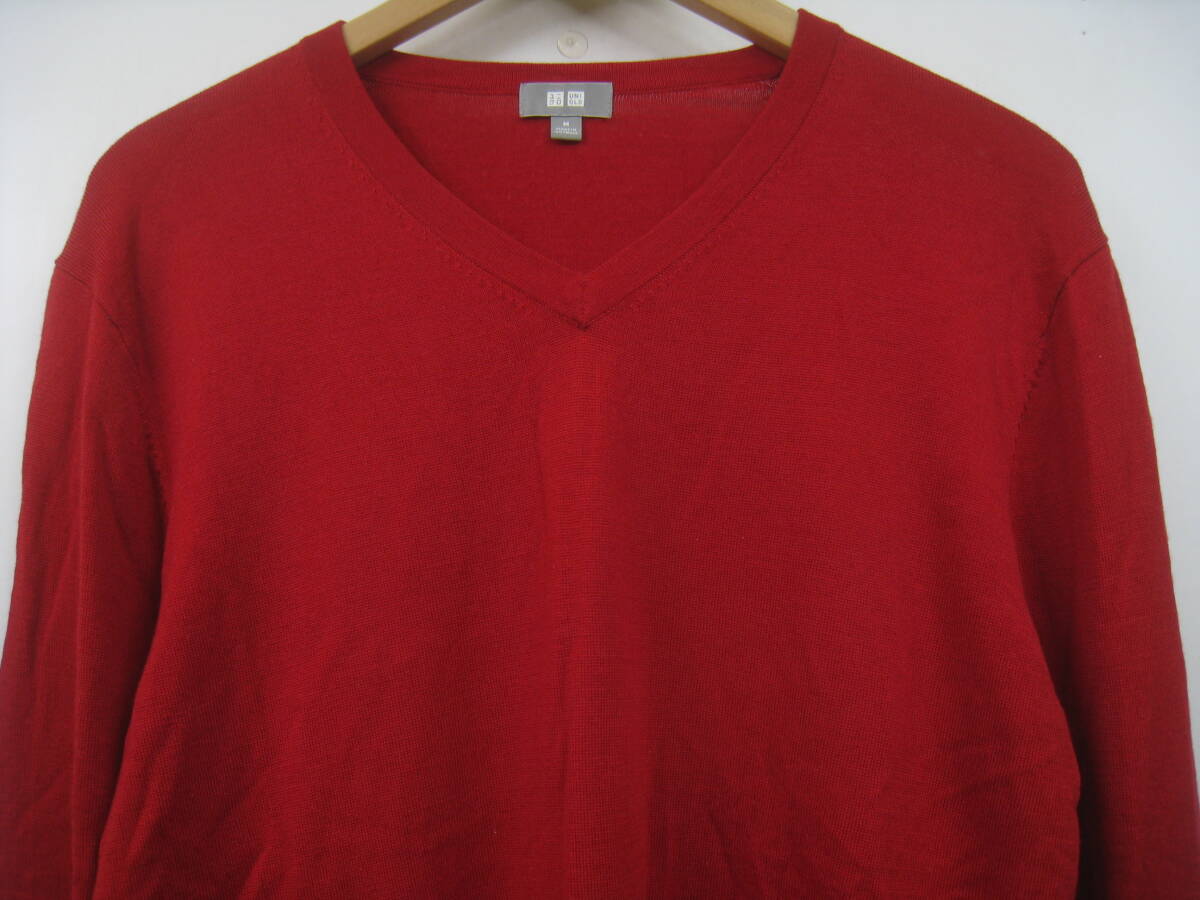 UNIQLO ユニクロ ウール100% ニット セーター 薄手 Vネック 赤 レッド サイズM