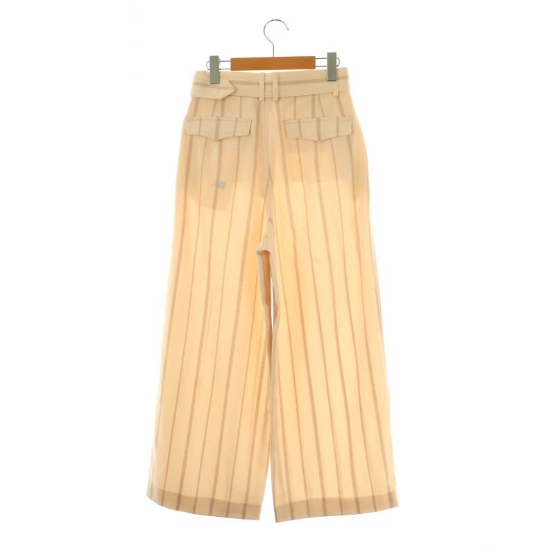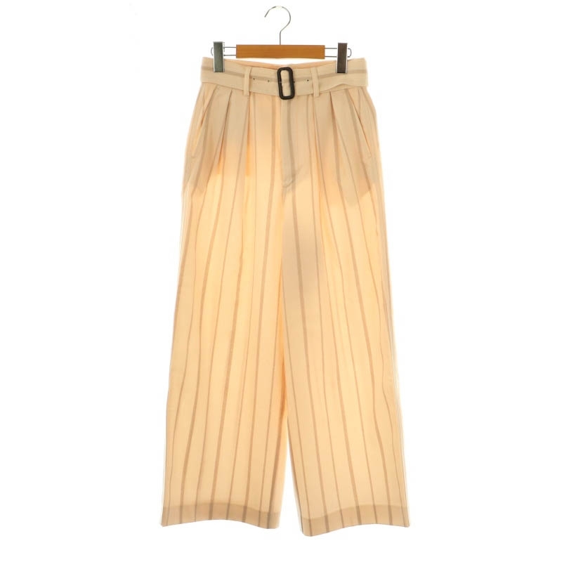 マカフィー MACPHEE トゥモローランド ベルト付きウールストライプワイドパンツ 32 ペールオレンジ グレージュ /ES ■OS レディース