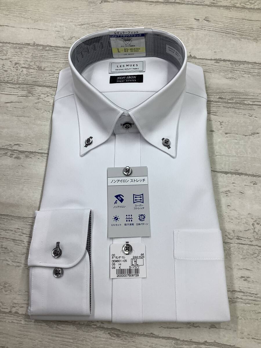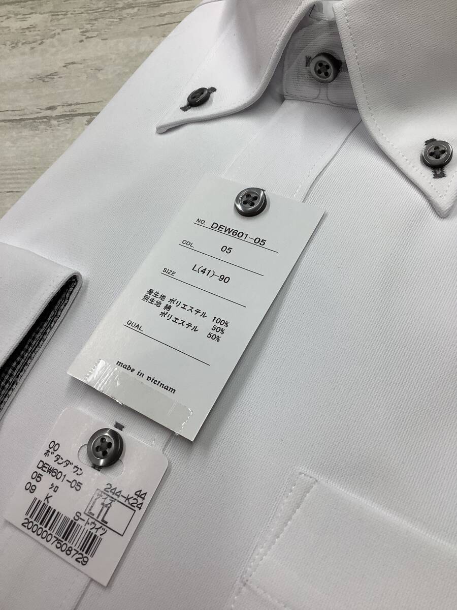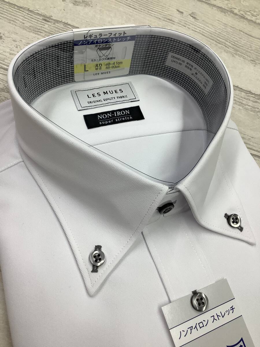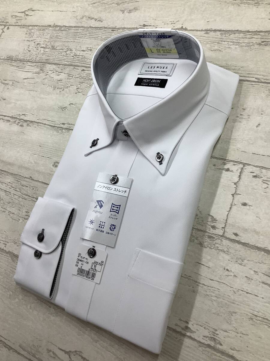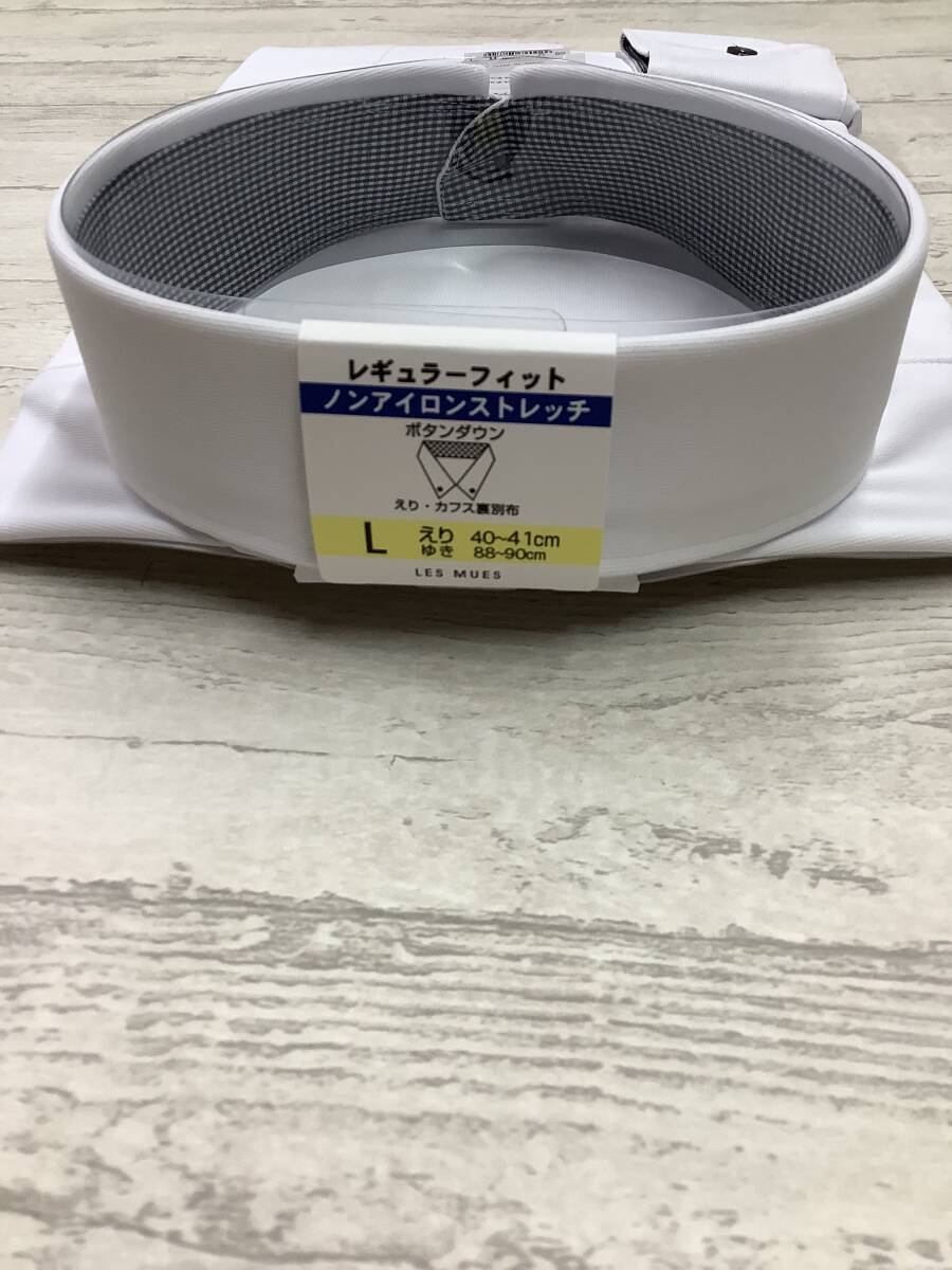 新品未使用★41-90 長袖Lサイズ  スーパーストレッチ ポリエステル100% ボタンダウン ★定価4,990円 白