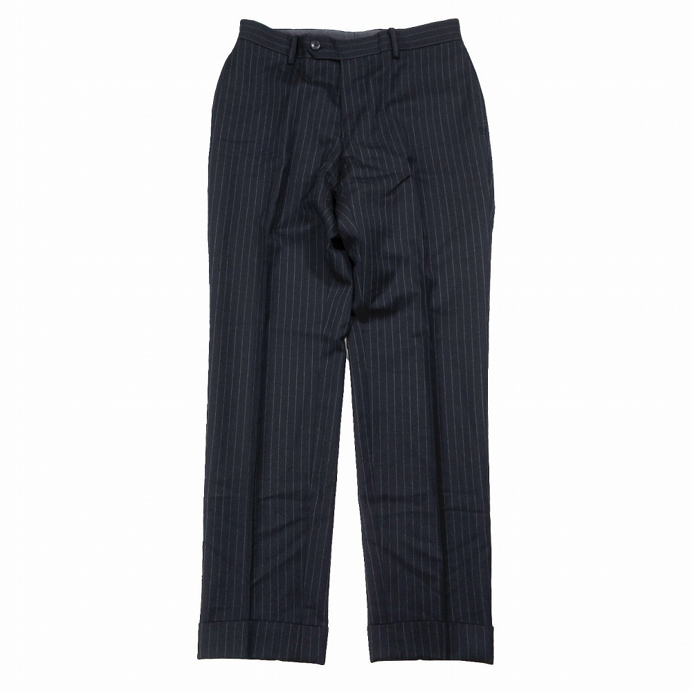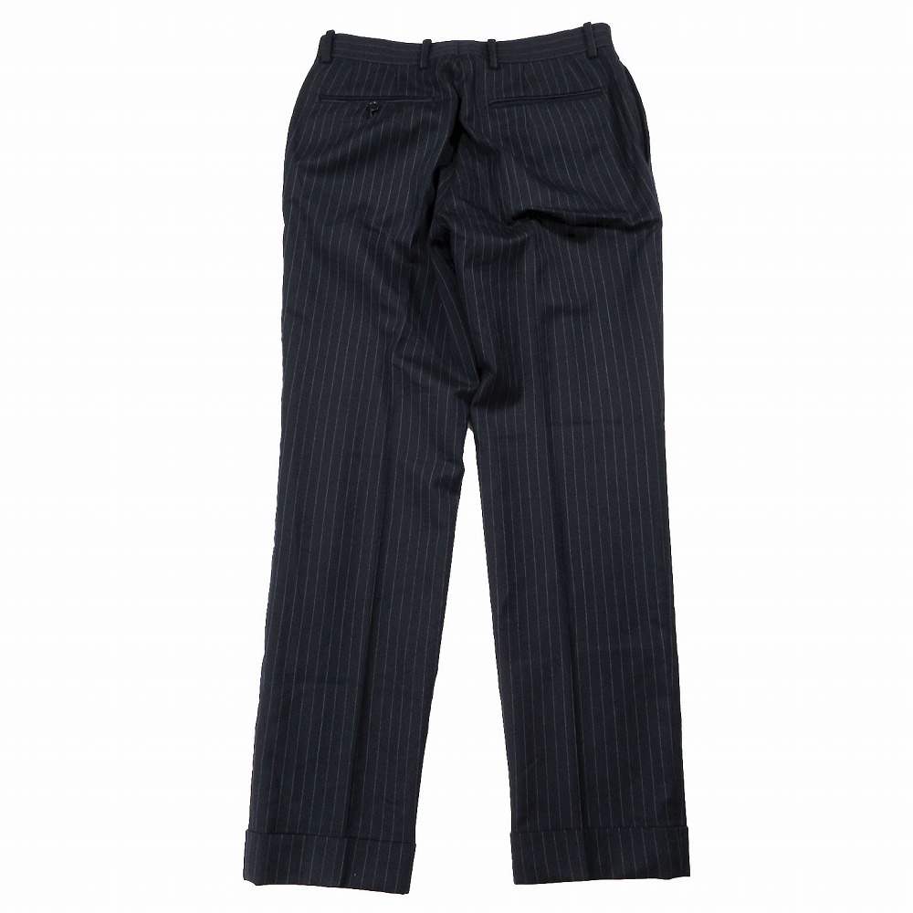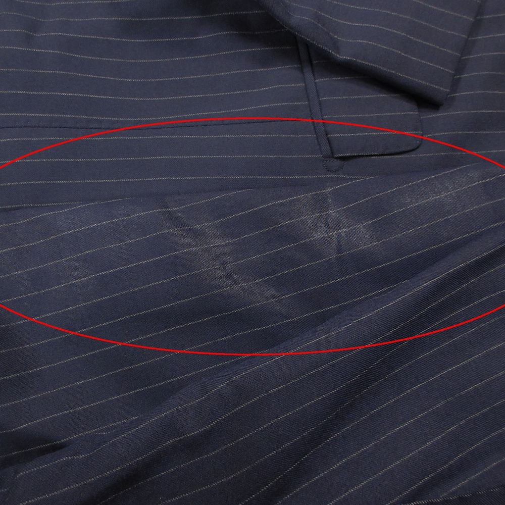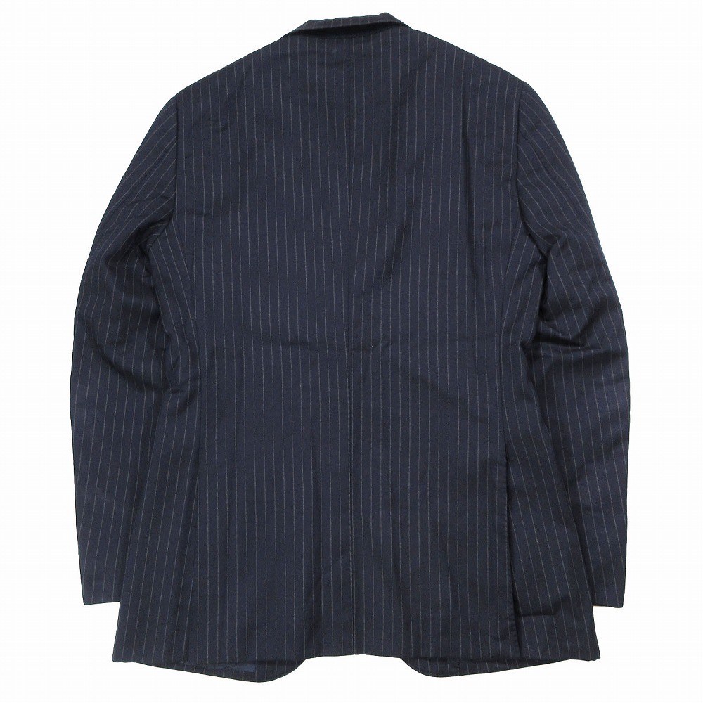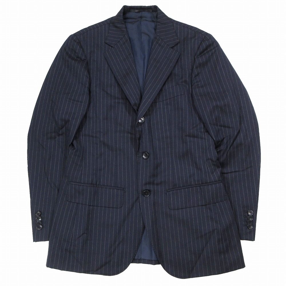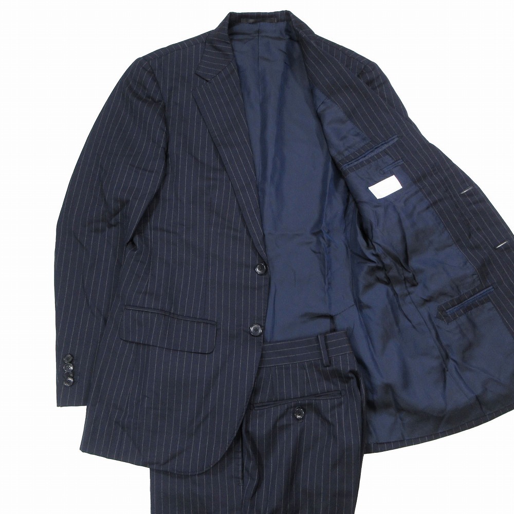 【EDIFICE エディフィス ストライプ柄 スーツ セットアップ 3B 段返り 本切羽 Super 120s カノニコ サイズ42 XS ネイビー】 | |