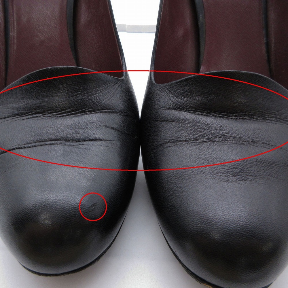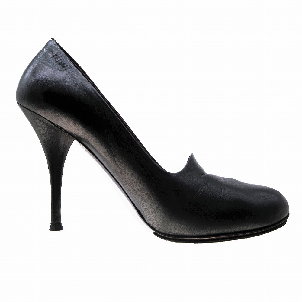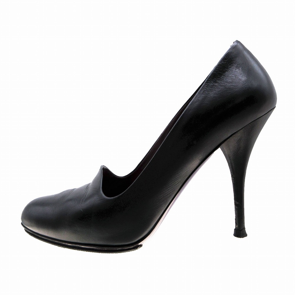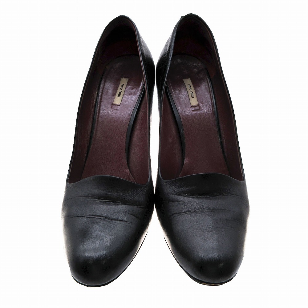 【miu miu ミュウミュウ アーモンドトゥ レザー パンプス シューズ 靴 イタリア製 サイズ37.5 24.5cm ブラック 黒 レディース】 | |