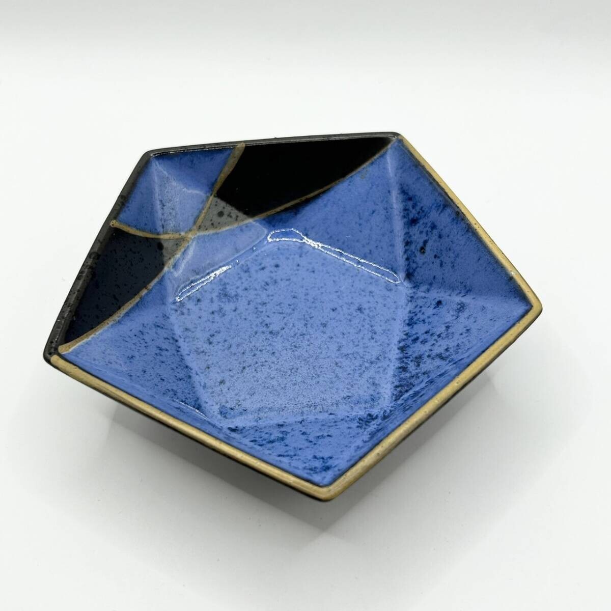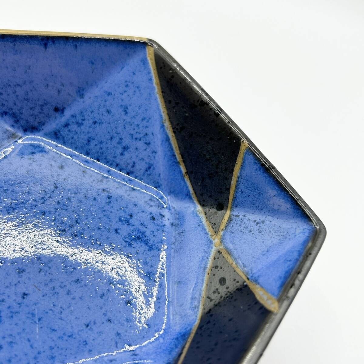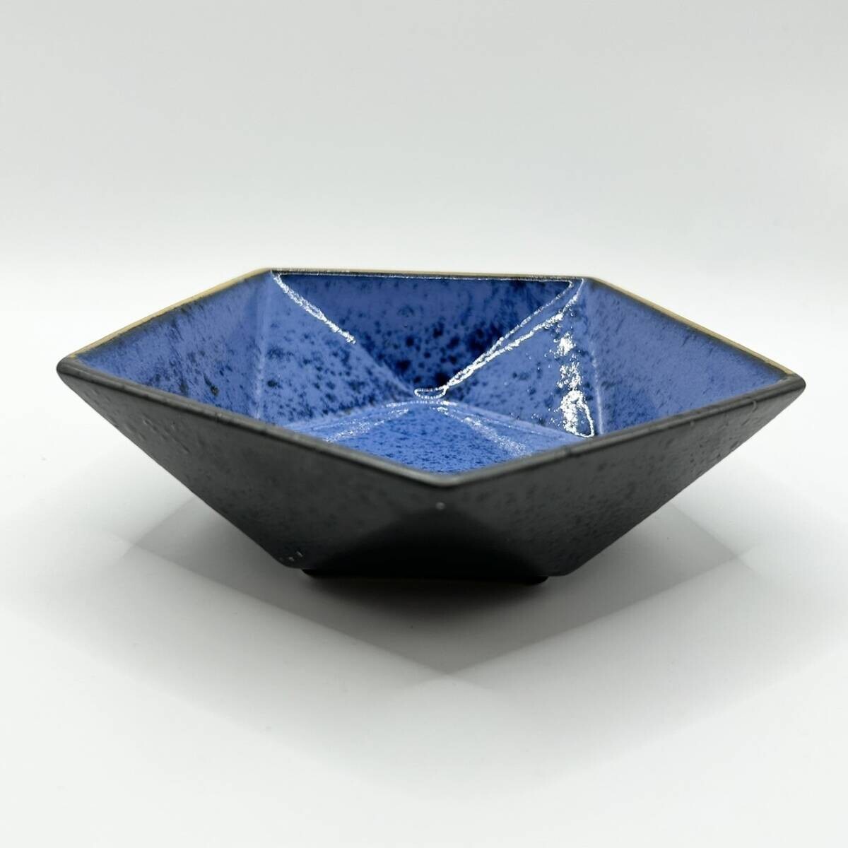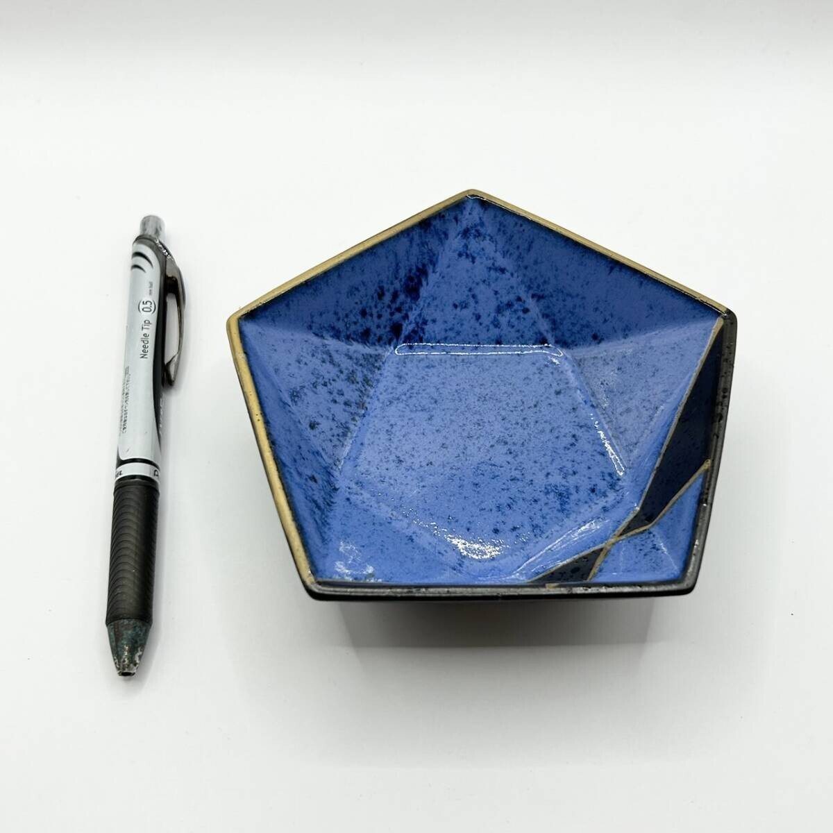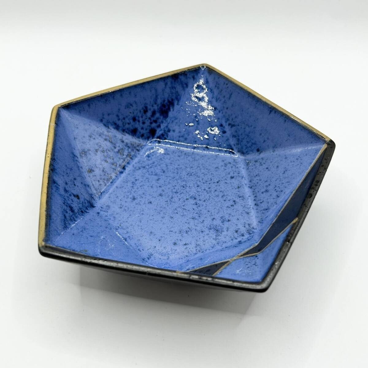 A) 五角形小皿 和食器 瑠璃色 青 黒 金縁 金彩 皿 プレート ブルー ブラック ゴールド オリエンタルブルー 多用皿 AE0109