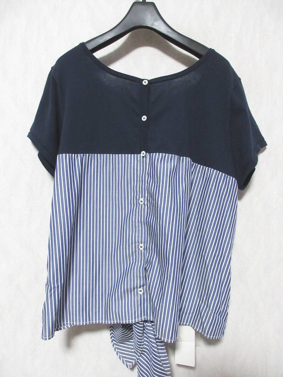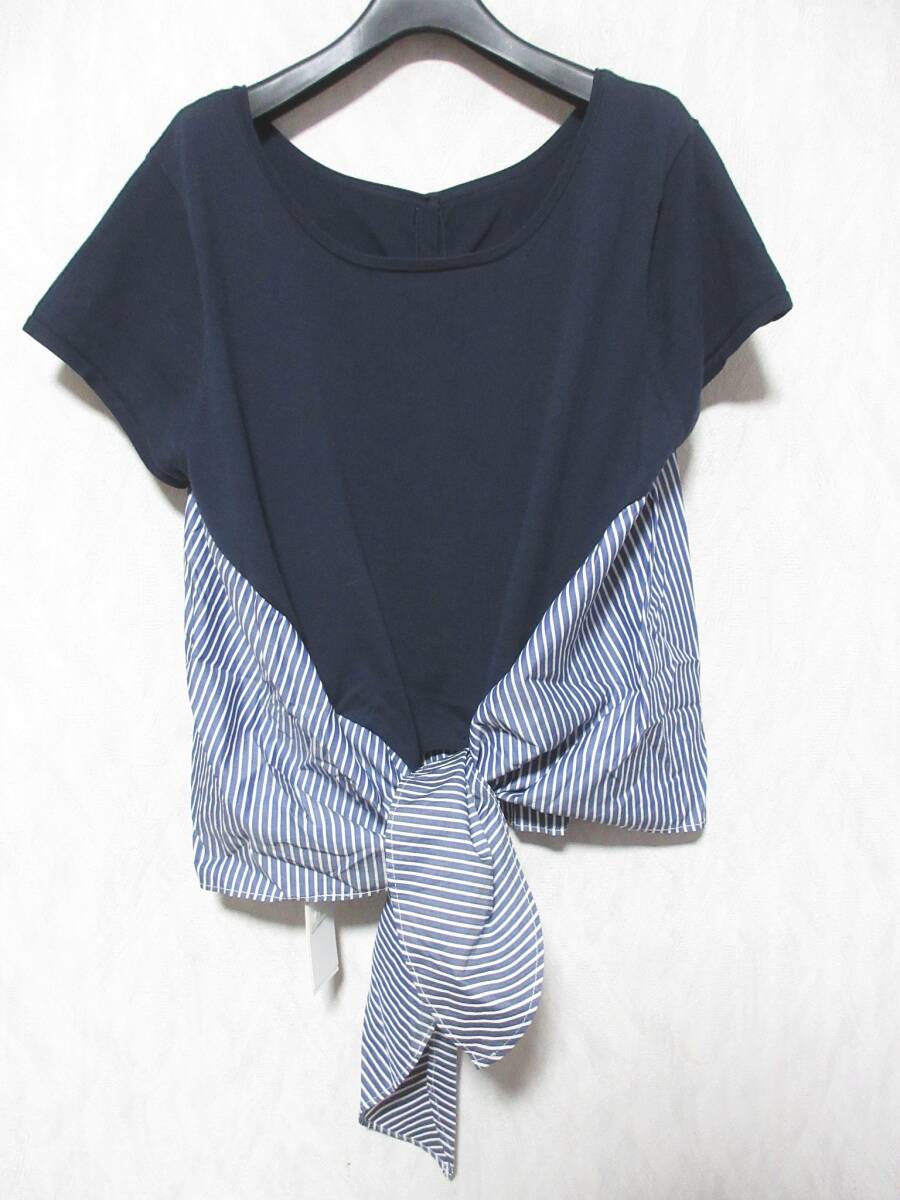 未使用 KUMIKYOKU 組曲 ストライプ 半袖 プルオーバー カットソー レディース 6 大きいサイズ ネイビー yg7235
