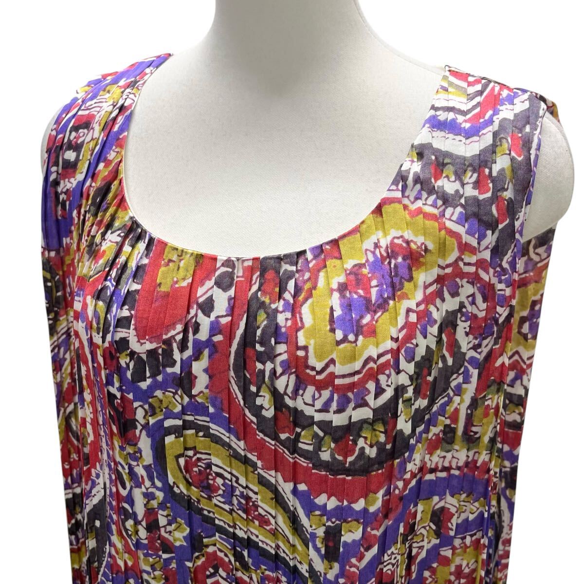 アンタイトルUNTITLED 赤 紫 ノースリーブ プリーツ カラフル ペイズリー リゾート レディース ワンピース size2