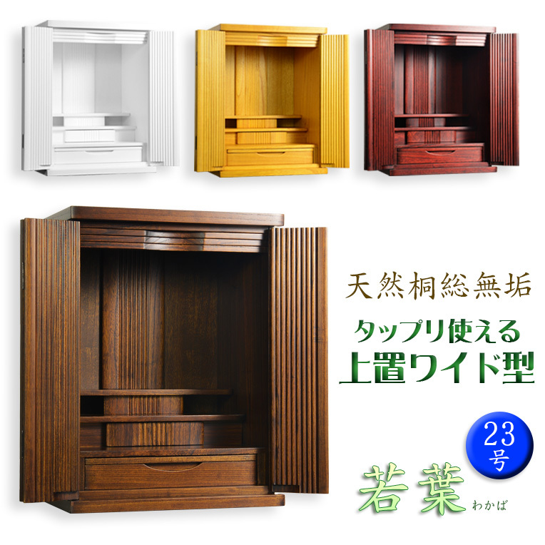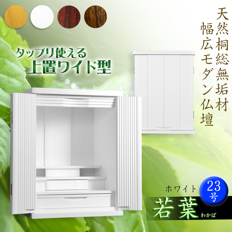 ホワイト 仏壇【収納力抜群のモダン仏壇 桐総無垢:若葉(わかば)ワイド型 上置き23号】