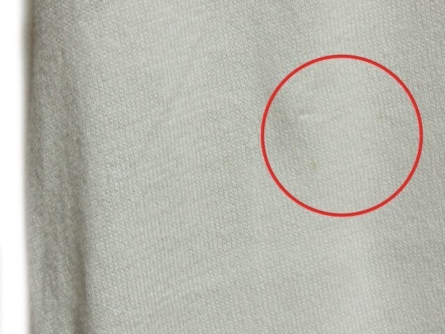 【状態】保管に伴うシワがあります。 多少の毛羽立ちなど使用感がございます。 首周り・前身頃に汚れがございます。