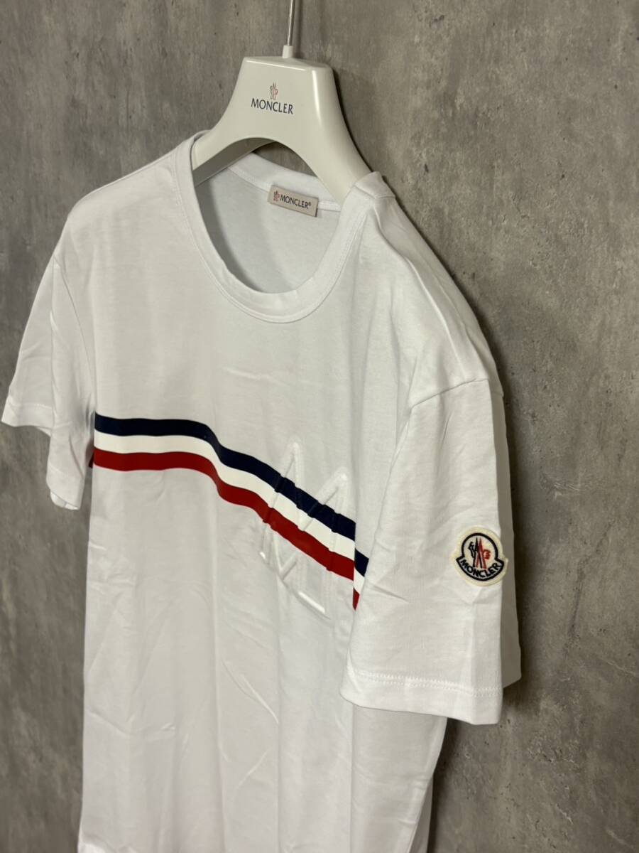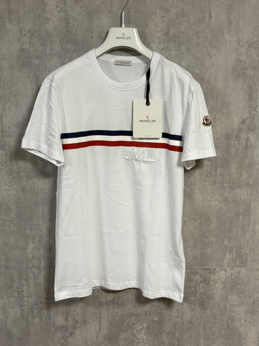 ☆新品未使用タグ付き☆ MONCLER tricolor strippedline MAGLIA T-SHIRT Tシャツ ホワイト色 白色 Sサイズ
