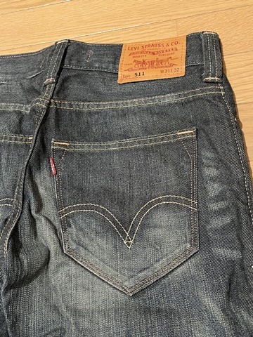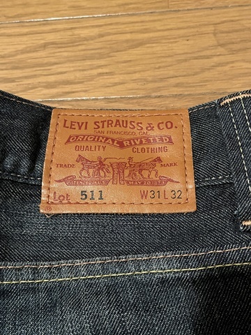 リーバイス LEVI'S 511 デニムパンツ スリム スキニー ストレート 31 ジーンズ ジーパン 革パッチ レザーパッチ ヴィンテージ加工 鬼ヒゲ