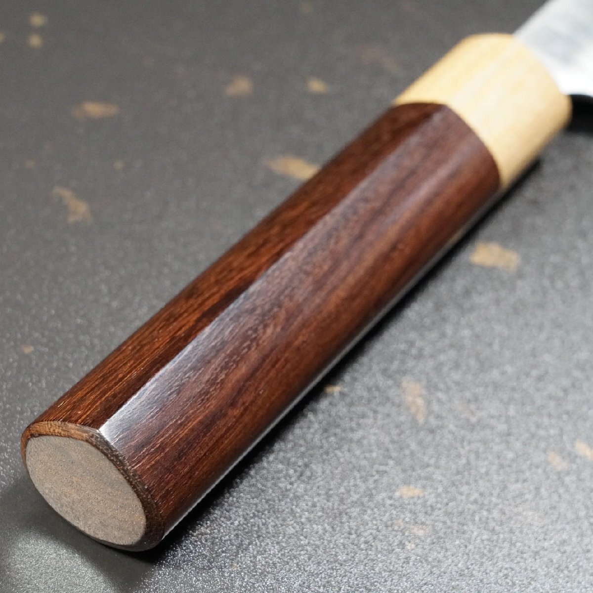 特殊処理を施した凹凸のあるダマスカス模様に加え、木目の綺麗なローズウッド柄が芸術的です。