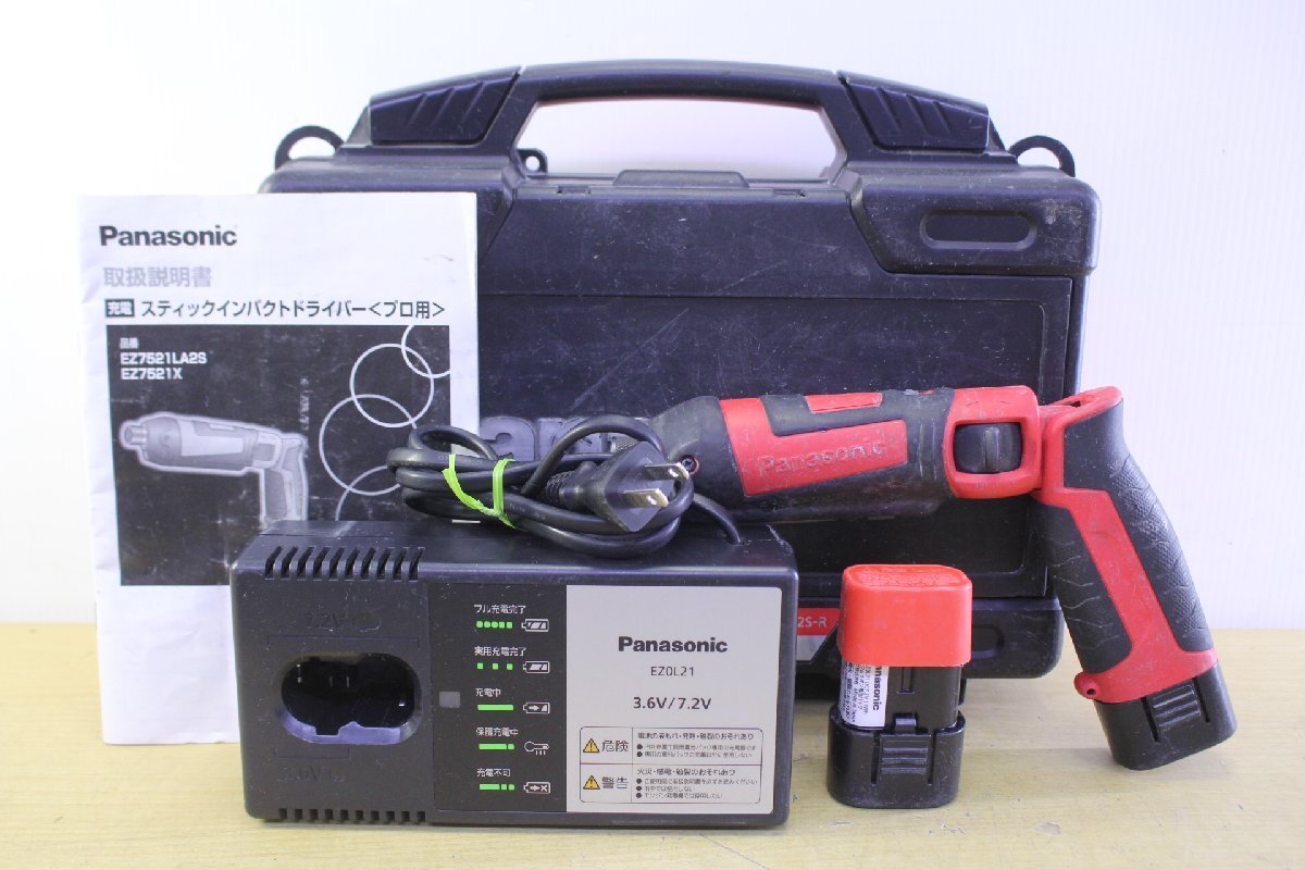 ●Panasonic/パナソニック EZ7521 充電スティックインパクトドライバー 7.2V レッド ネジ締め バッテリー/充電器/ケース他付き【11067555】