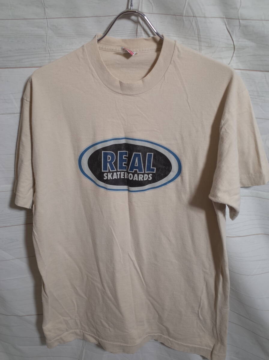 ご回覧ありがとうございます。お手数ではございますがトラブルの元になりますので、説明文は最後までお読み下さい。 こちらは、ヴィンテージ USA製 80s90s REAL SKATEBOARDS リアルスケートボード ロゴ 半袖 Tシャツになります。 1989年にサンフランシスコでトミーゲレロ、ジムシーボーにより設立されたブランドになります。 マークゴンザレスなども所属していた老舗のスケートブランドで、パウエルやサンタクルーズなどと人気やカリスマ性は 遜色ないブランドですが絶対的な玉数が少なく希少です。 ボディーは80年代のフルーツオブザルームを使用している最初期のモデルになります。 状態はプリント割れ、後身頃の腰付近に薄汚れがあります。年代を考慮すれば良品の部類かと思います。 |