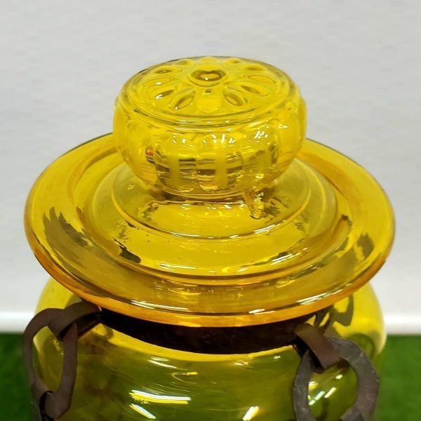 首の部分に金属製の金具がついており、これを何処かに吊り下げたりすることもできそうですが、そうした場合に蓋付きのこの容器の使い道が更にわからなくなりそうです。