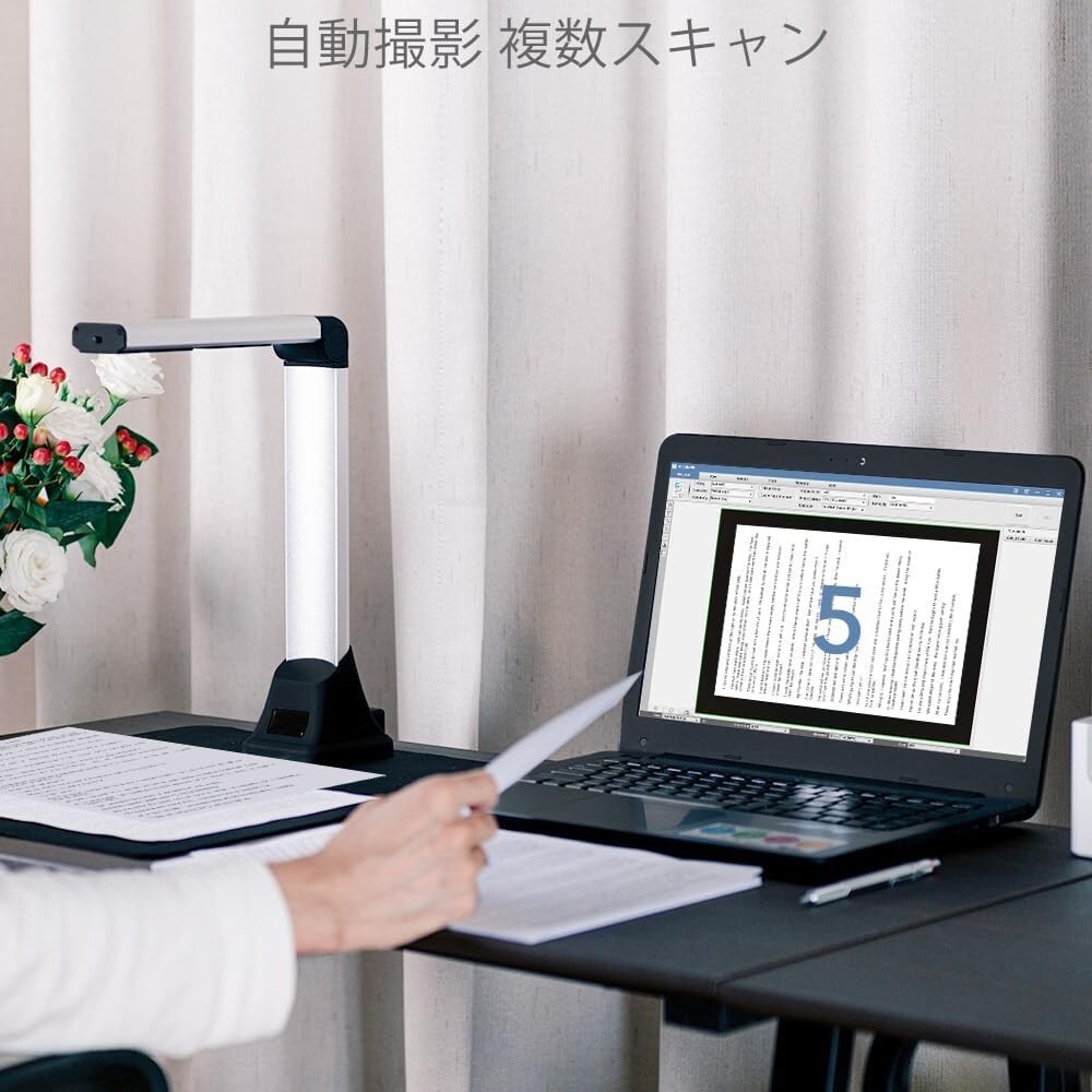 【強力な機能】500万画素のカメラを搭載したポータブルスキャナーは、最大A4サイズの文書や物体をスキャンできます。自動連続撮影、画像の歪みなどの自動補正や自動トリミング機能で、精細な読み取り性能で書類や写真などの画像データをありのままで再現できます。6つのLEDライトにより、暗い環境でも十分な明るさを確保します。