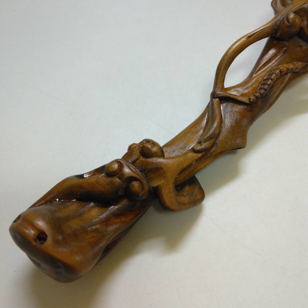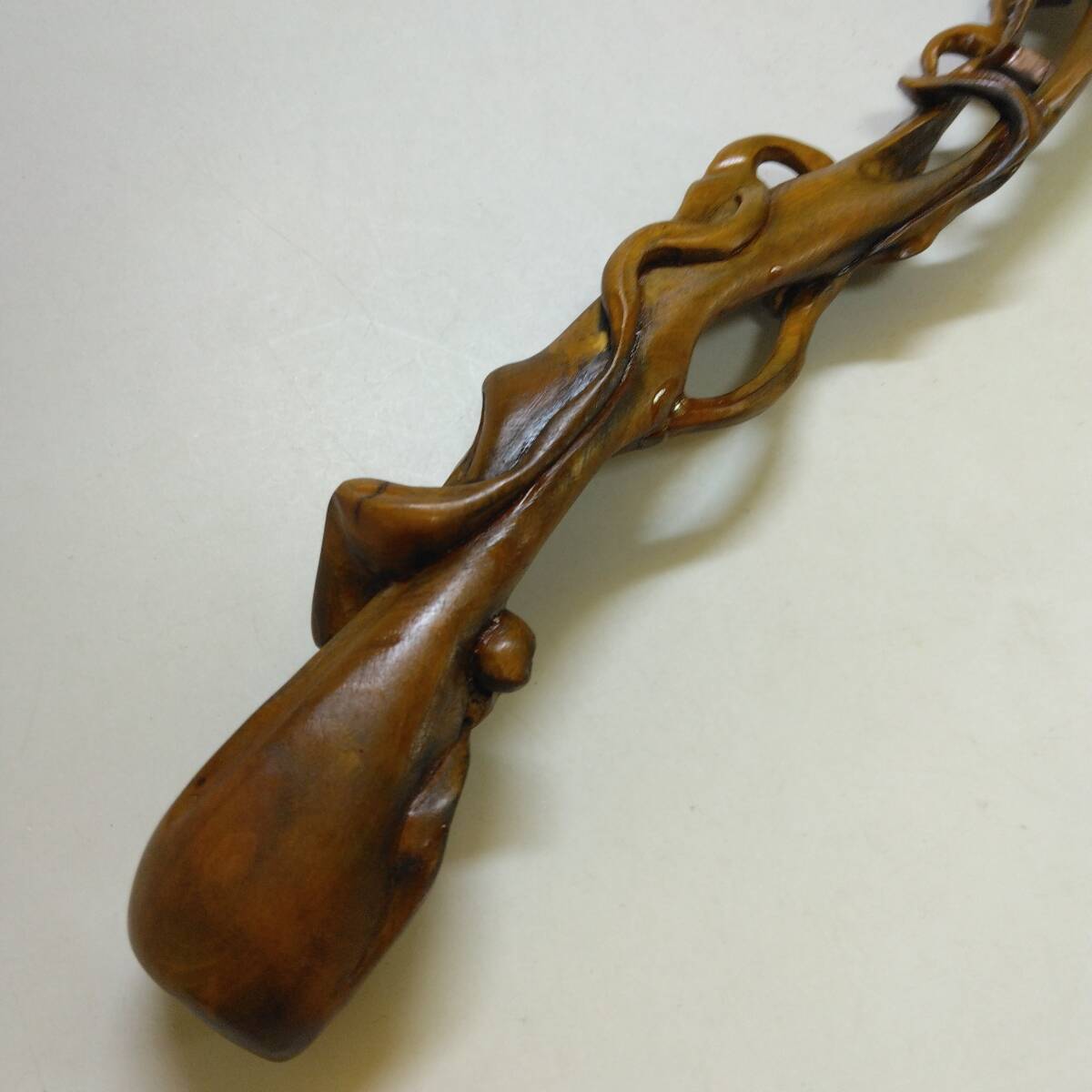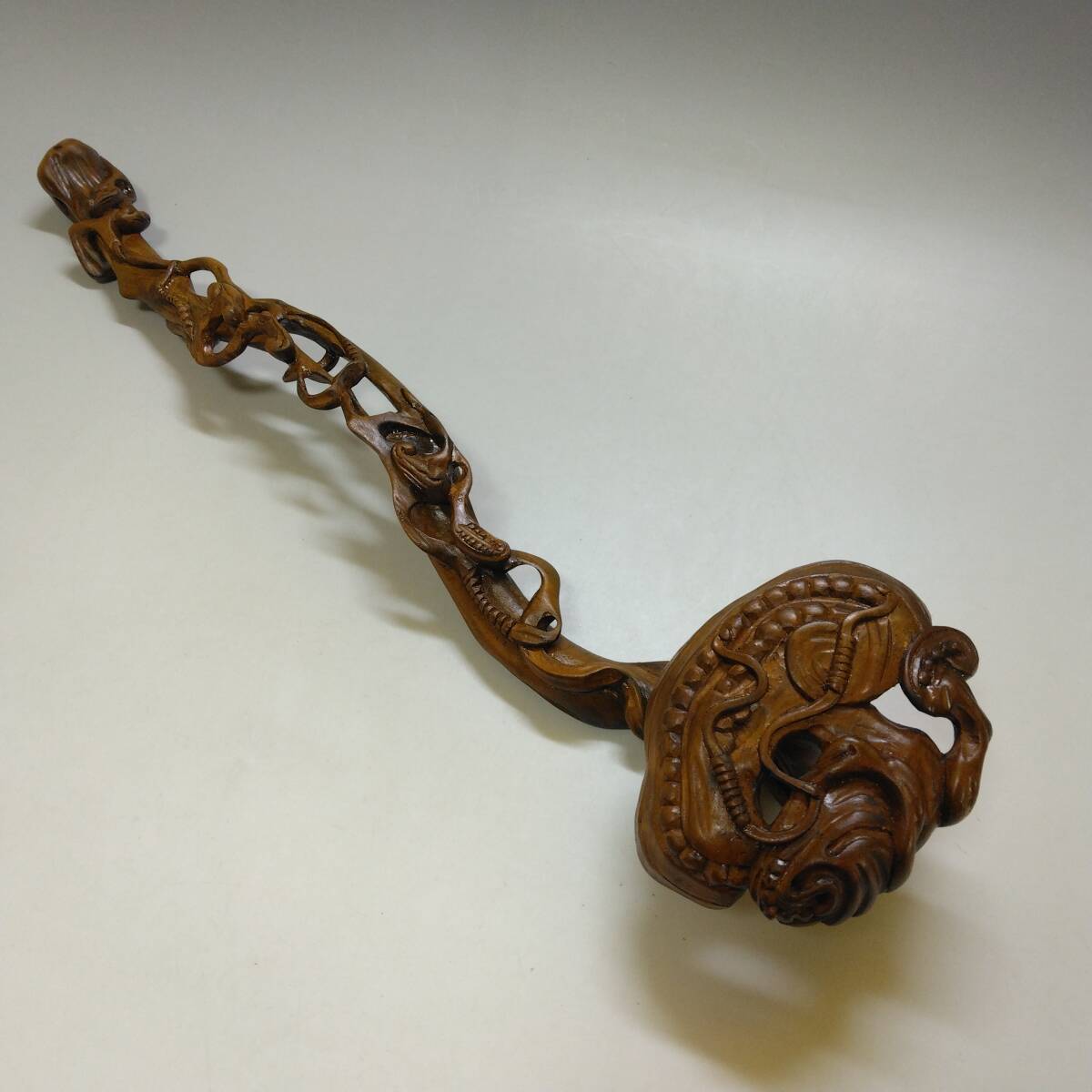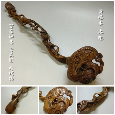 【T-462】黄楊木 木彫 霊芝如意 古美術 時代物 | |||