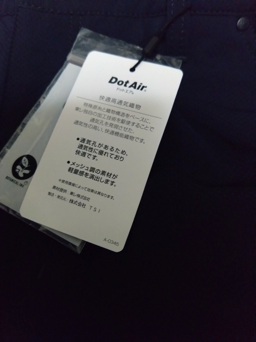 特殊原糸と織物構造をベースに東レ独自の加工技術を駆使することで通気孔を発現させた快適素材のドットエアーを使用