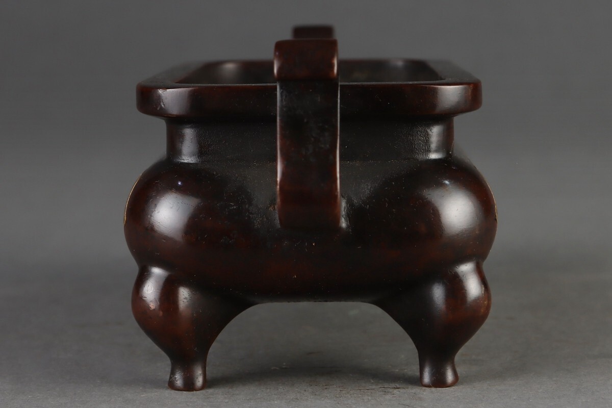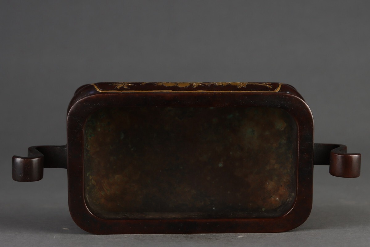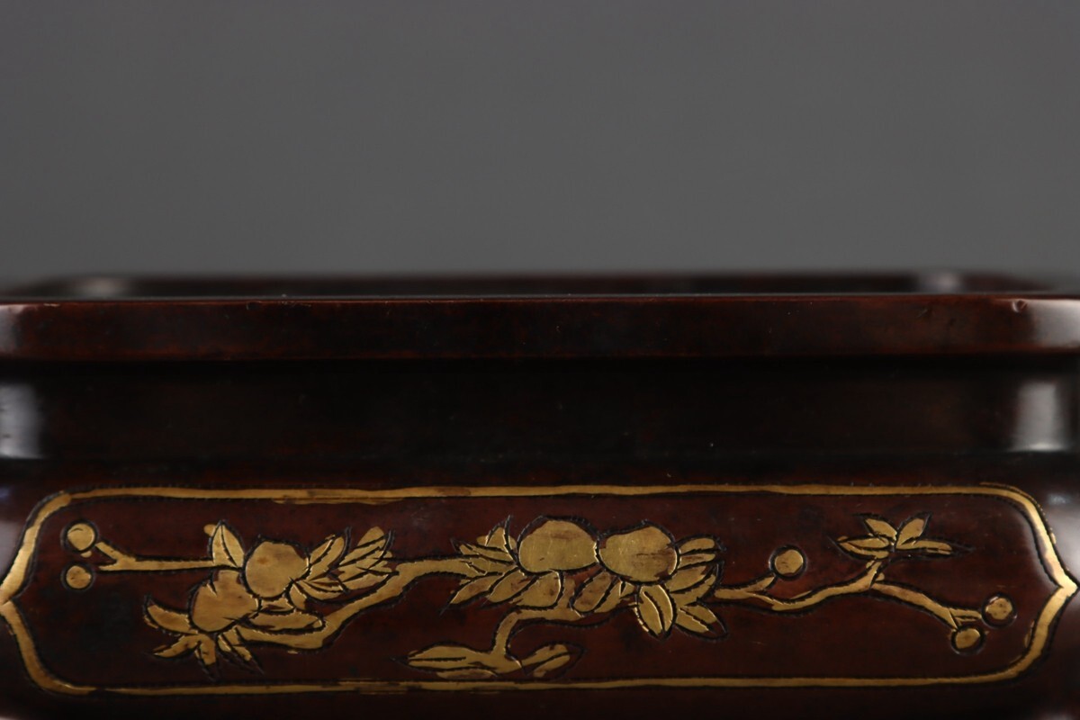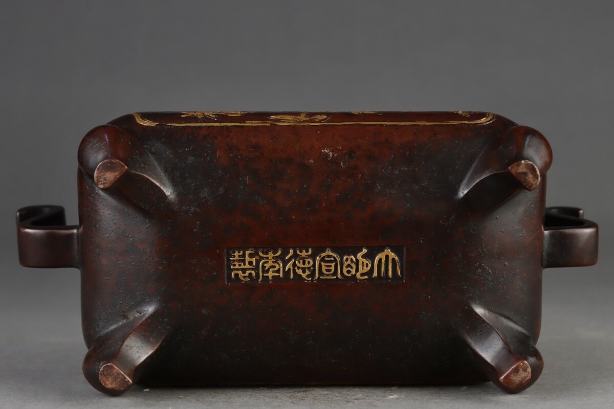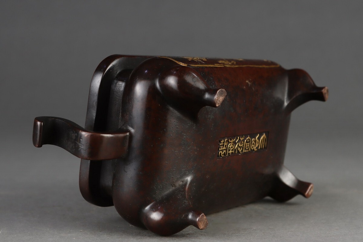 「明代 大明宣徳年製 古銅彫 塗金折枝紋 朝冠耳老銅香炉」旧銅器 置物擺件 賞物 中国古美術 旧蔵出