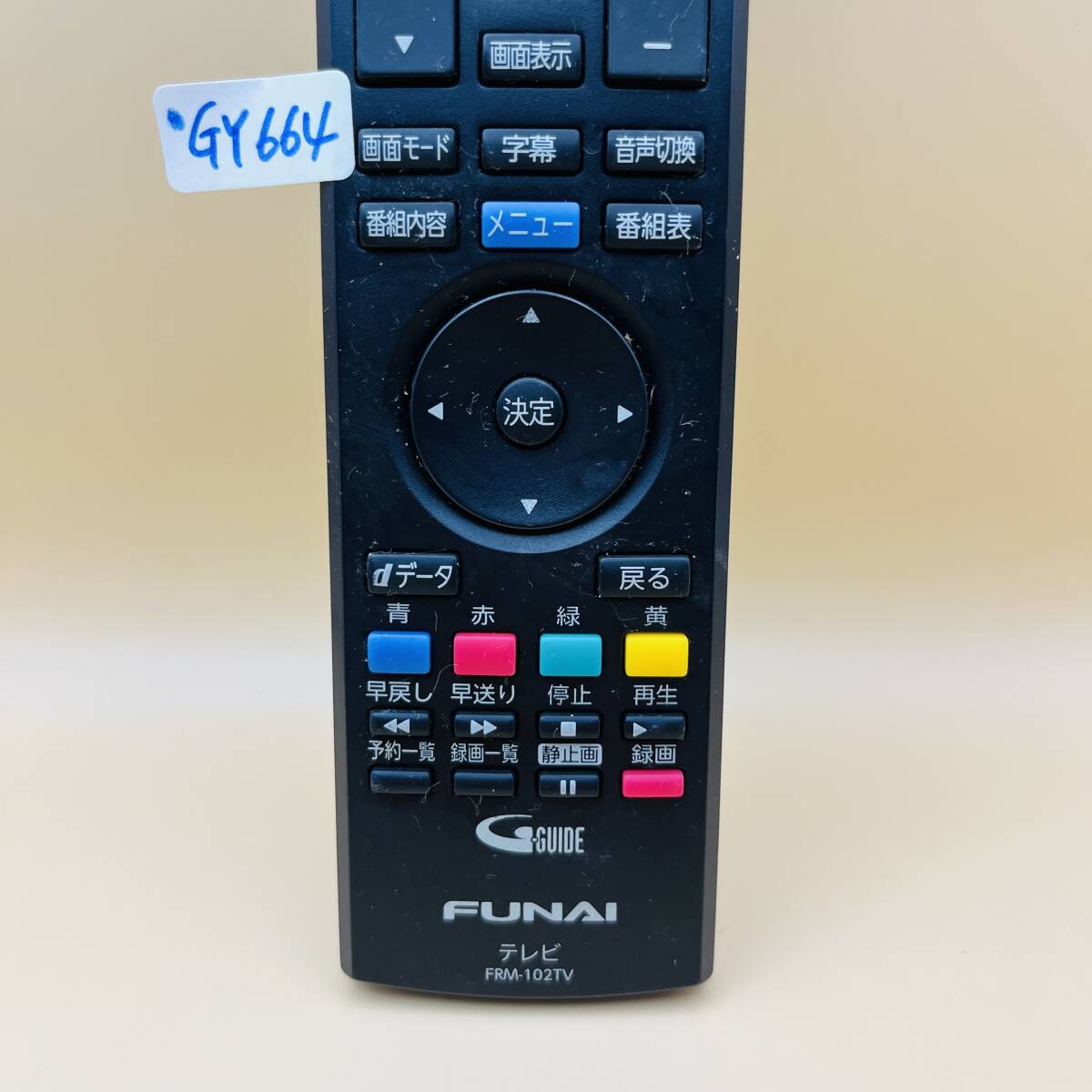 GY664★動作保証あり フナイ テレビ リモコン FRM-102TV