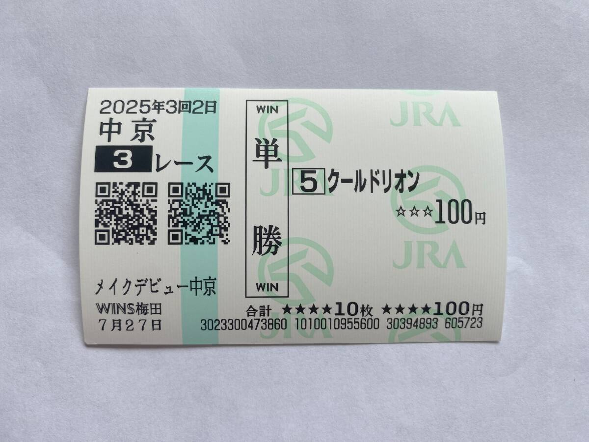クールドリオン メイクデビュー中京 場外単勝馬券