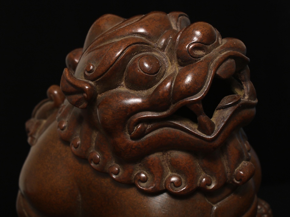 秘藏 清 純銅 獅子熏爐 香道具 銅製品 銅器 極細工 中国古玩 骨董品 古美味 O-07